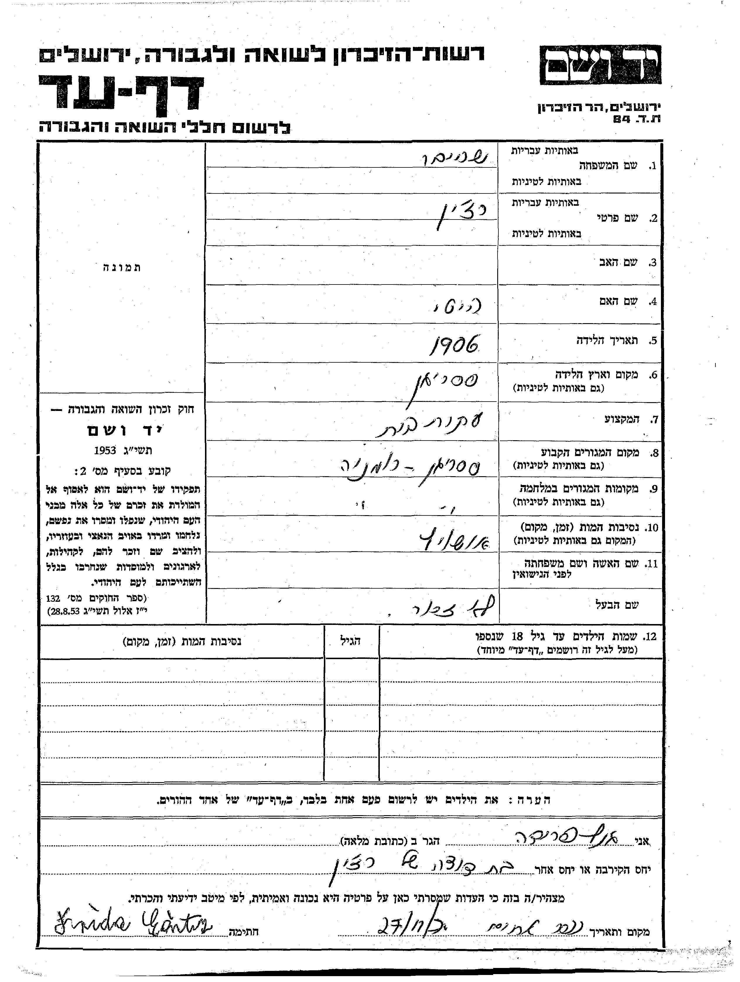 Яд Вашем - Листы свидетельских показаний Мемориального фонда