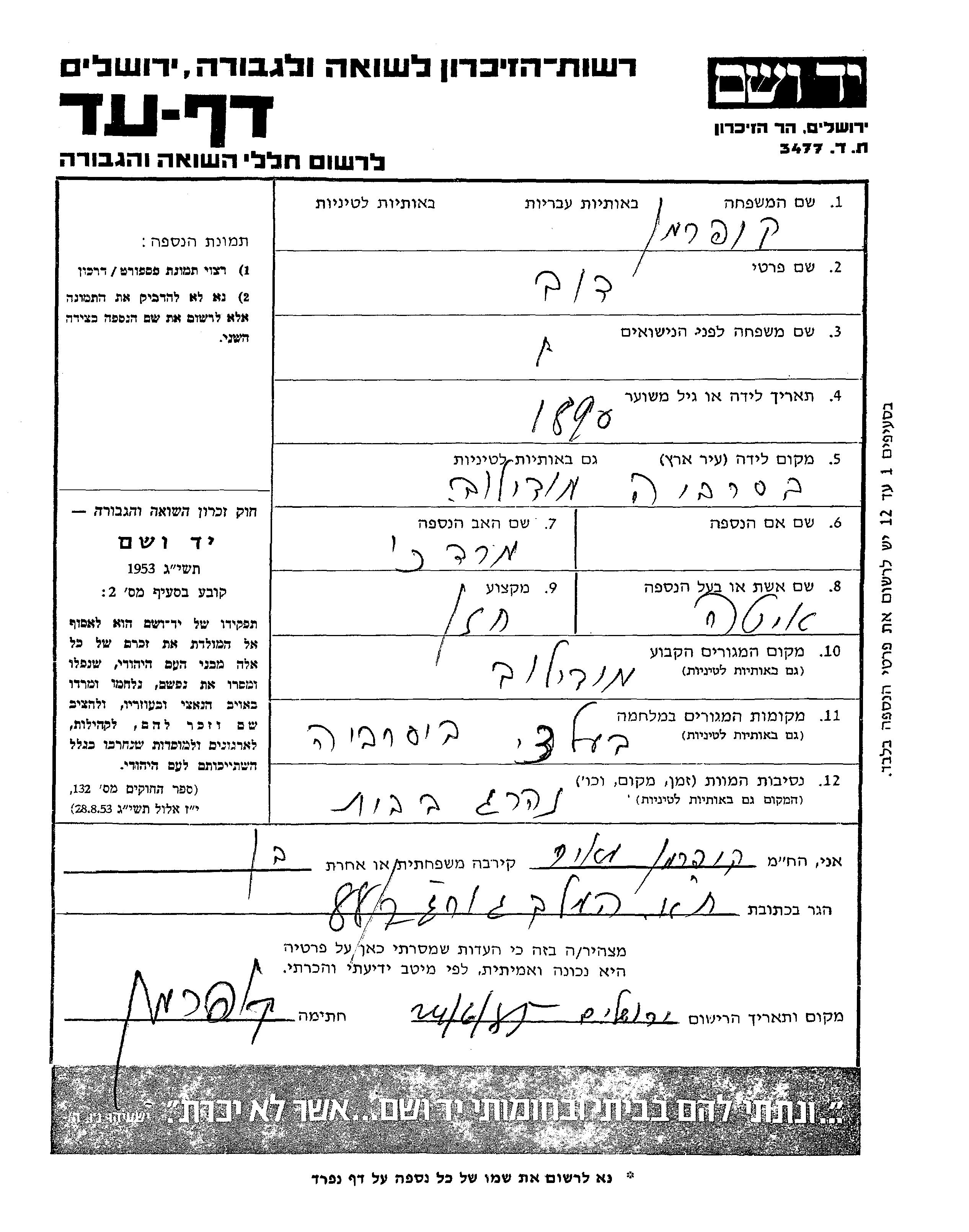 Поиск подателя Листа свидетельских показаний. Поиск по любому имени, включая уменьшительное или прозвище