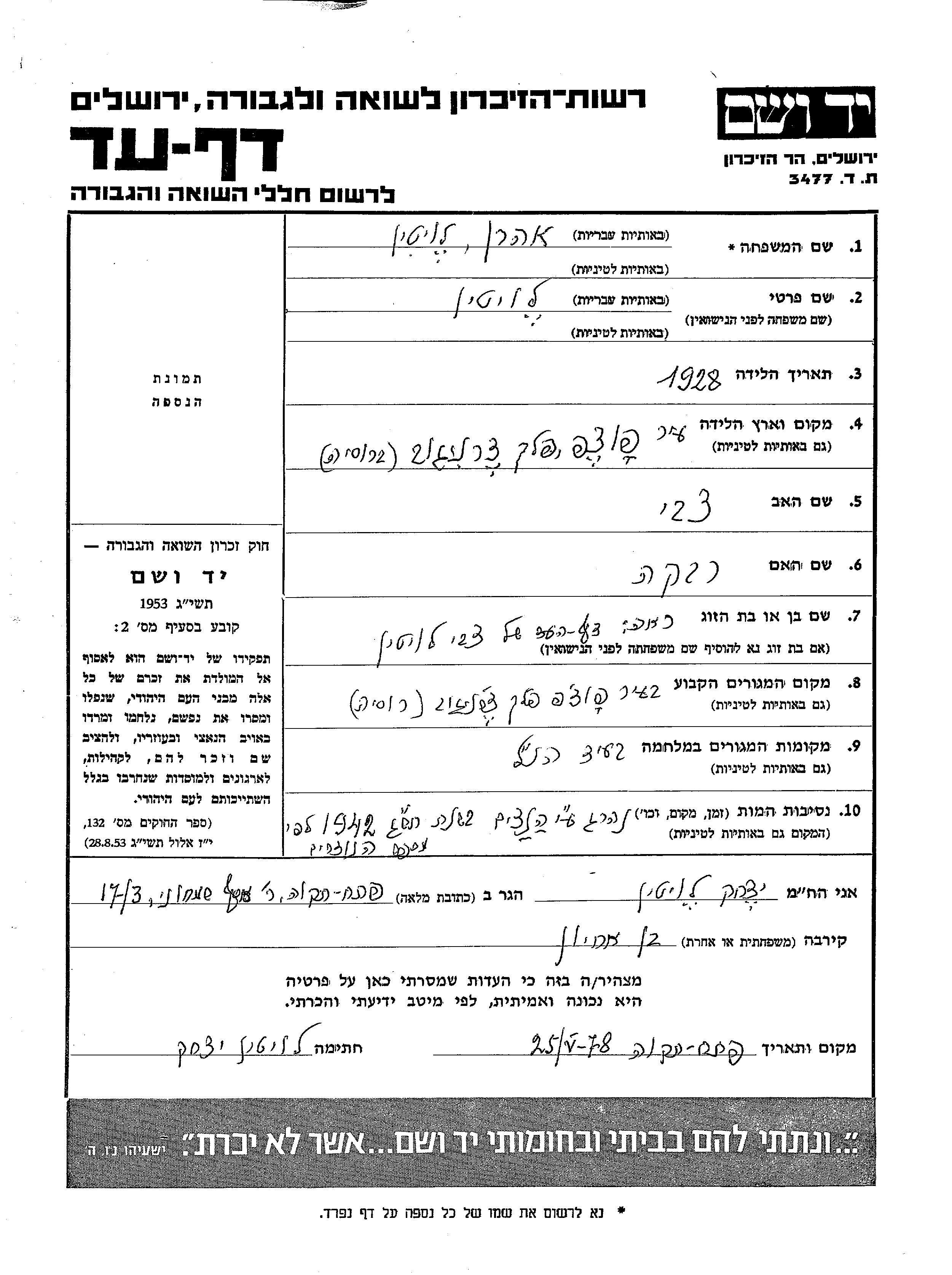 Поиск подателя Листа свидетельских показаний. Поиск по любому имени, включая уменьшительное или прозвище