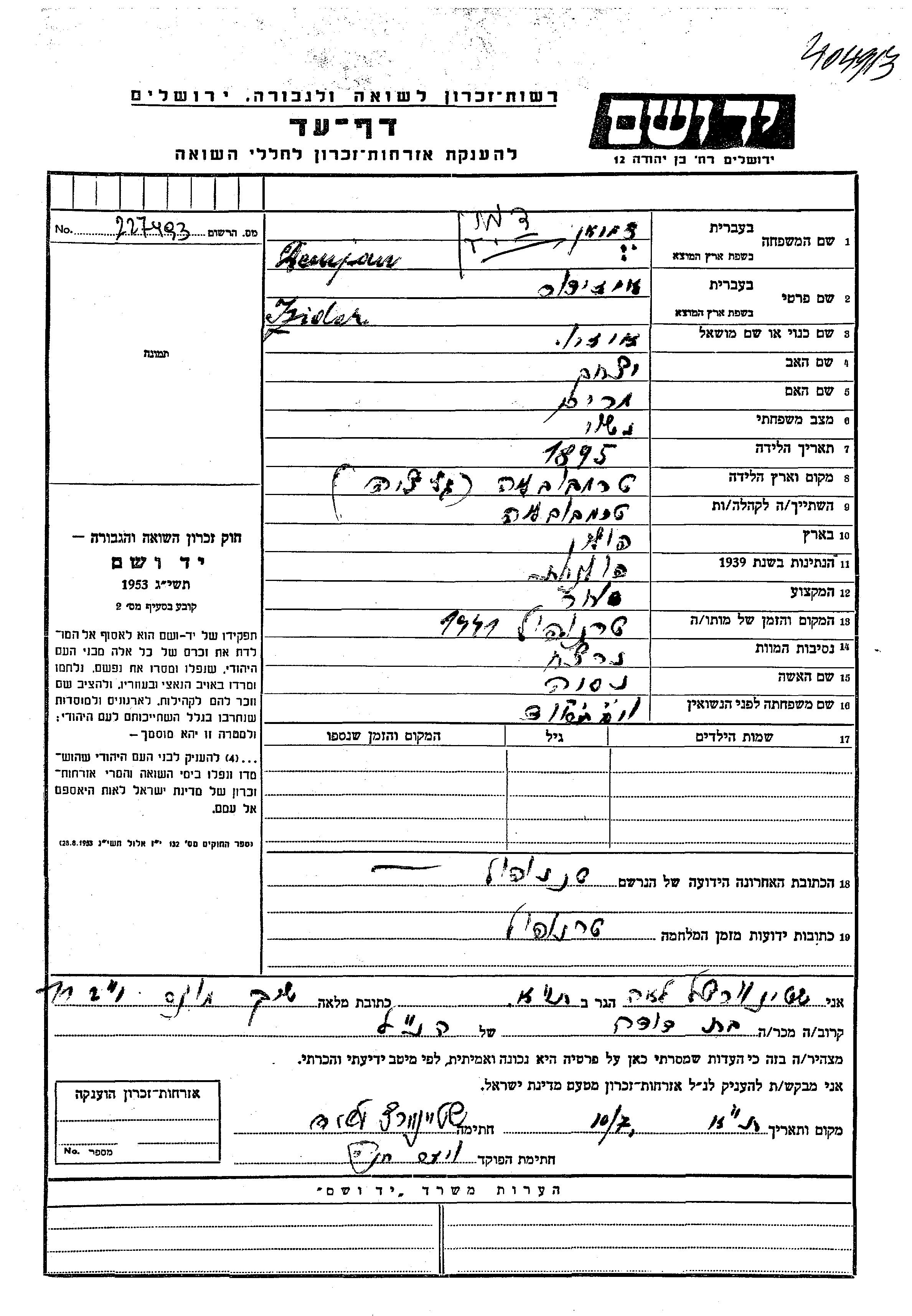 Яд Вашем - Листы свидетельских показаний Мемориального фонда