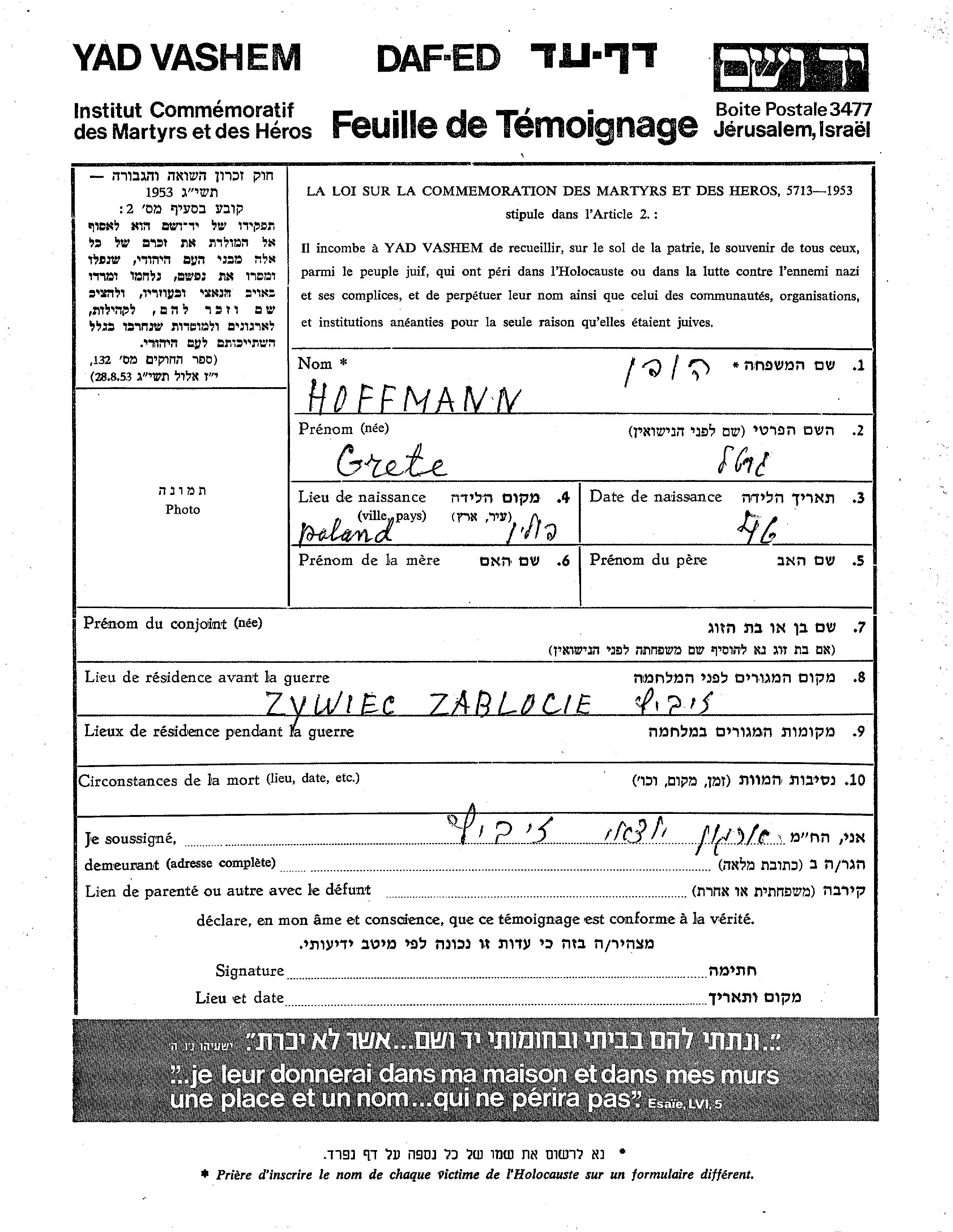 Хоффманн Хопен Грете Живец, Польша Лист свидетельских показаний