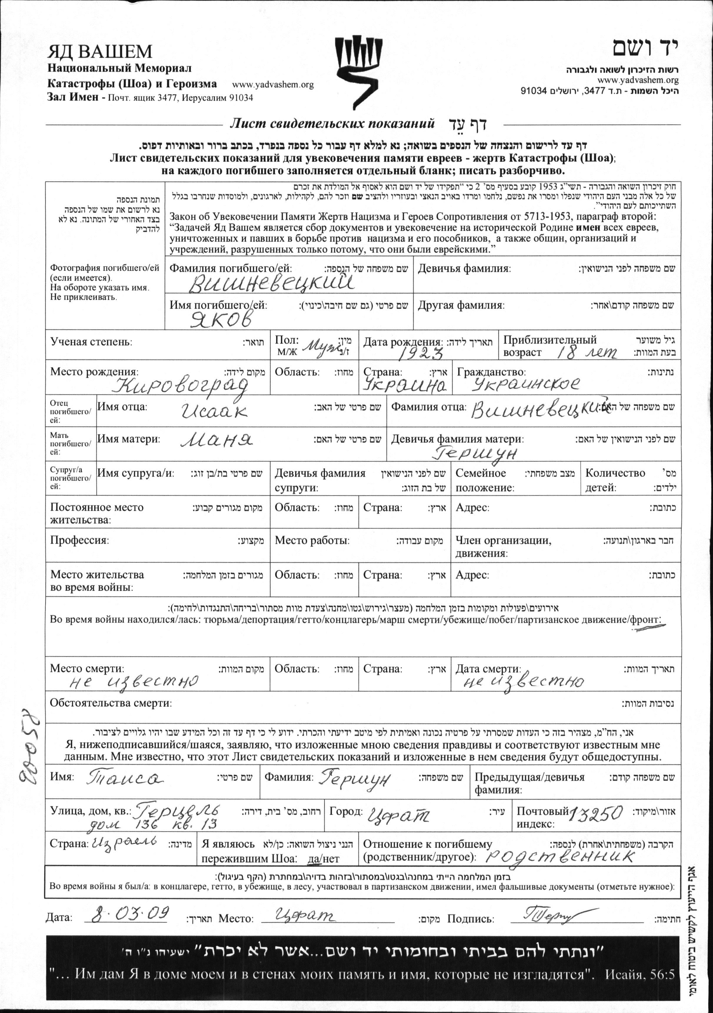 Поиск подателя Листа свидетельских показаний. Поиск по любому имени, включая уменьшительное или прозвище