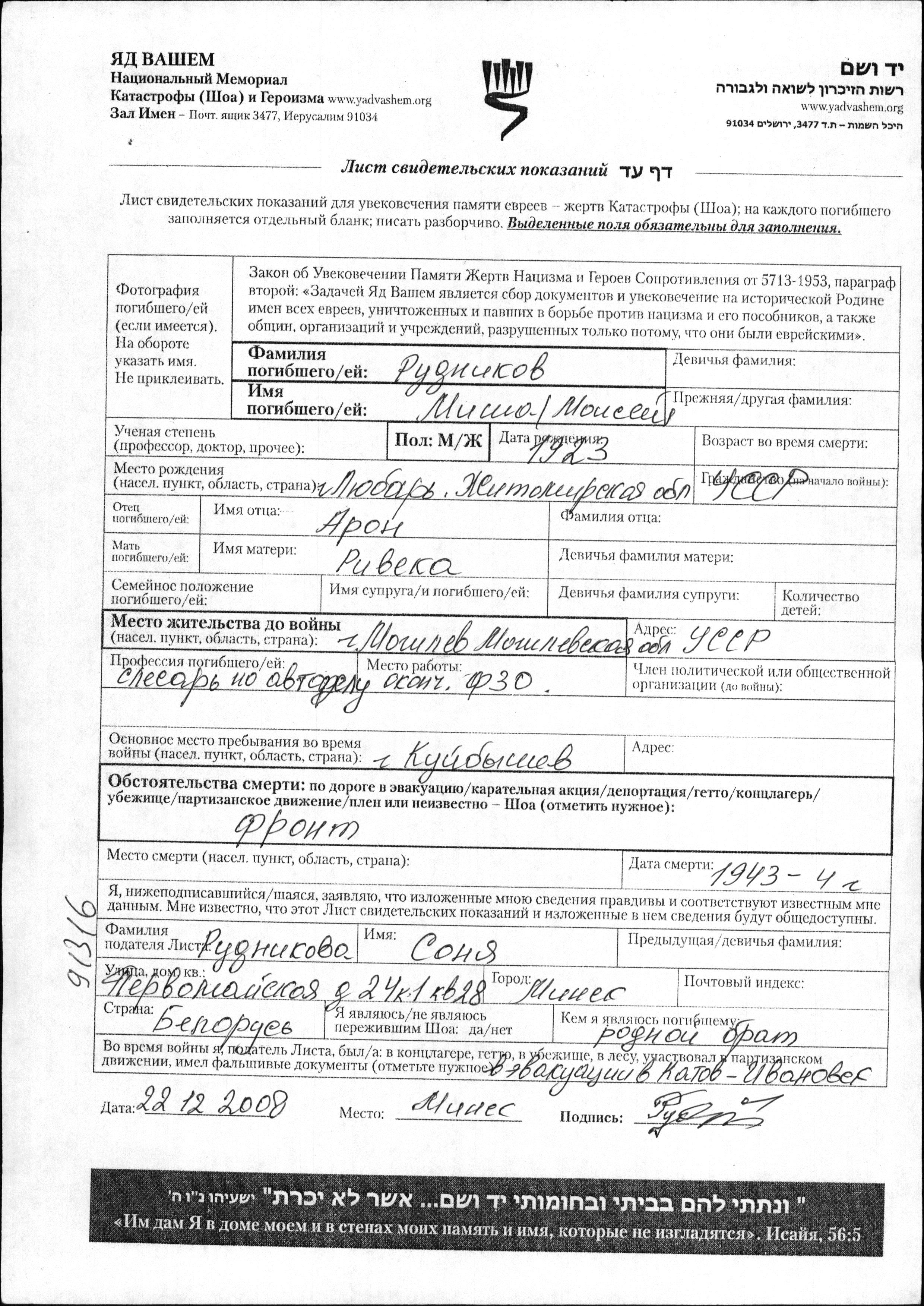 Поиск подателя Листа свидетельских показаний. Поиск по любому имени, включая уменьшительное или прозвище