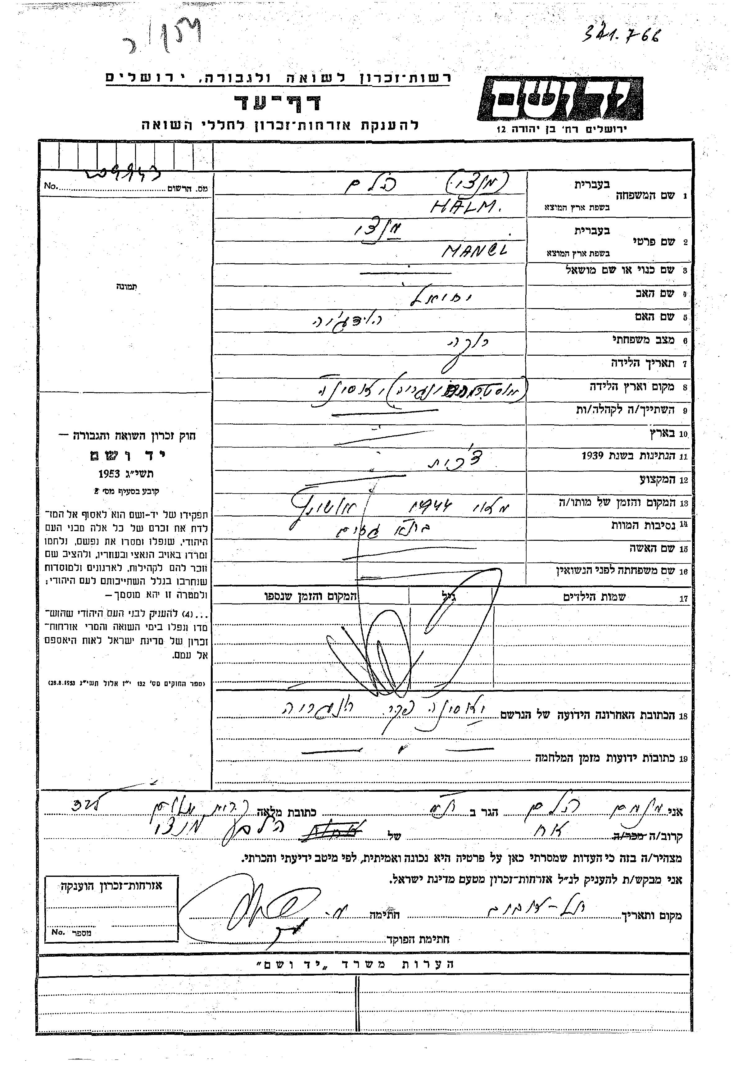 Яд Вашем - Листы свидетельских показаний Мемориального фонда