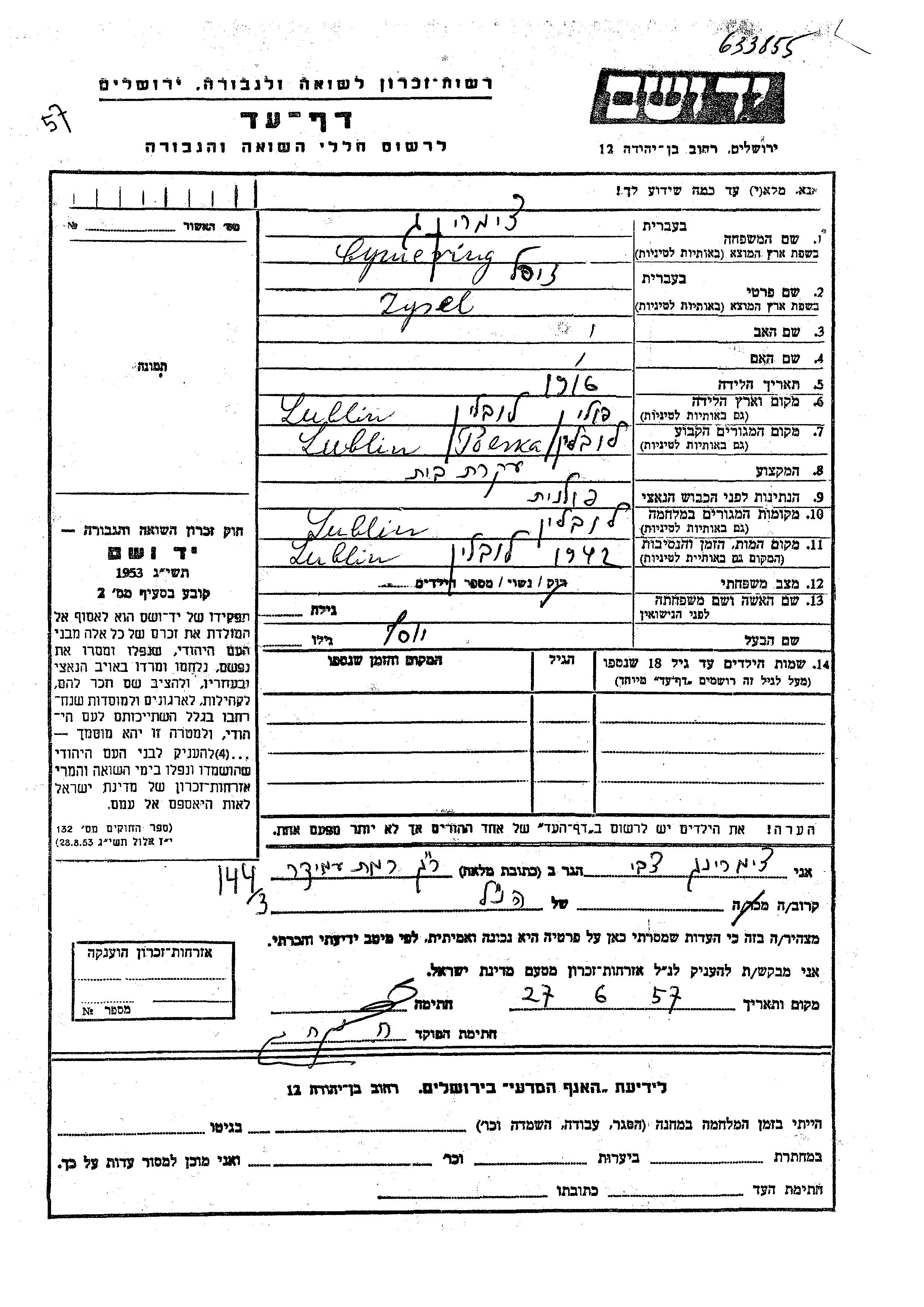 Яд Вашем - Листы свидетельских показаний Мемориального фонда