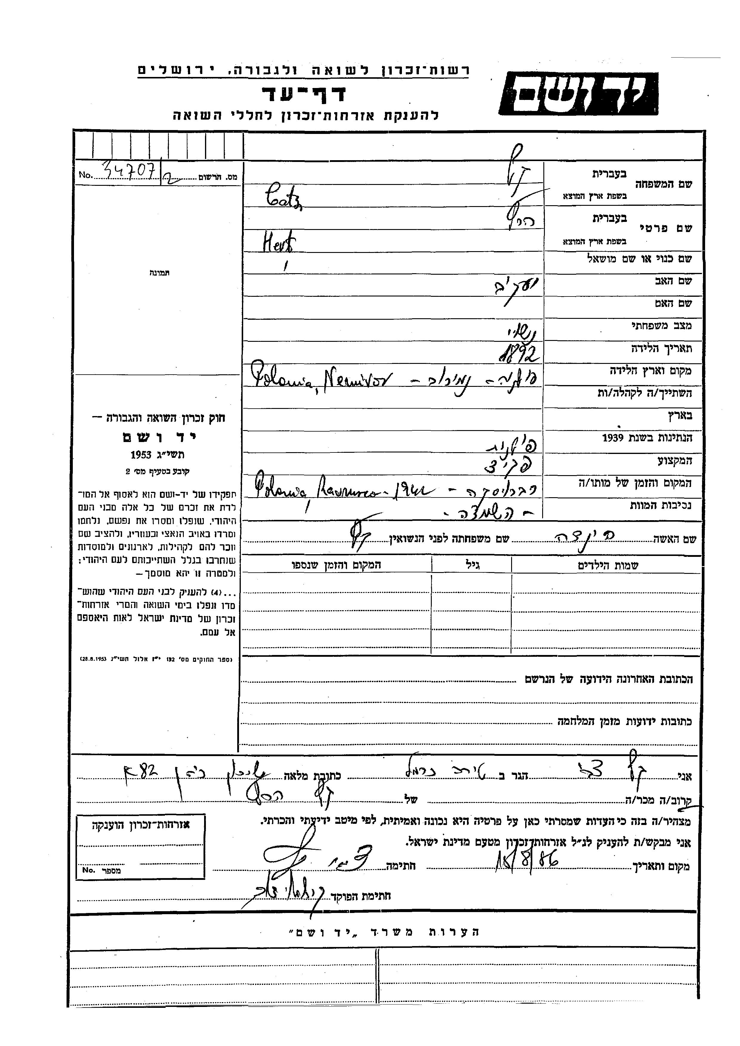 Яд Вашем - Листы свидетельских показаний Мемориального фонда