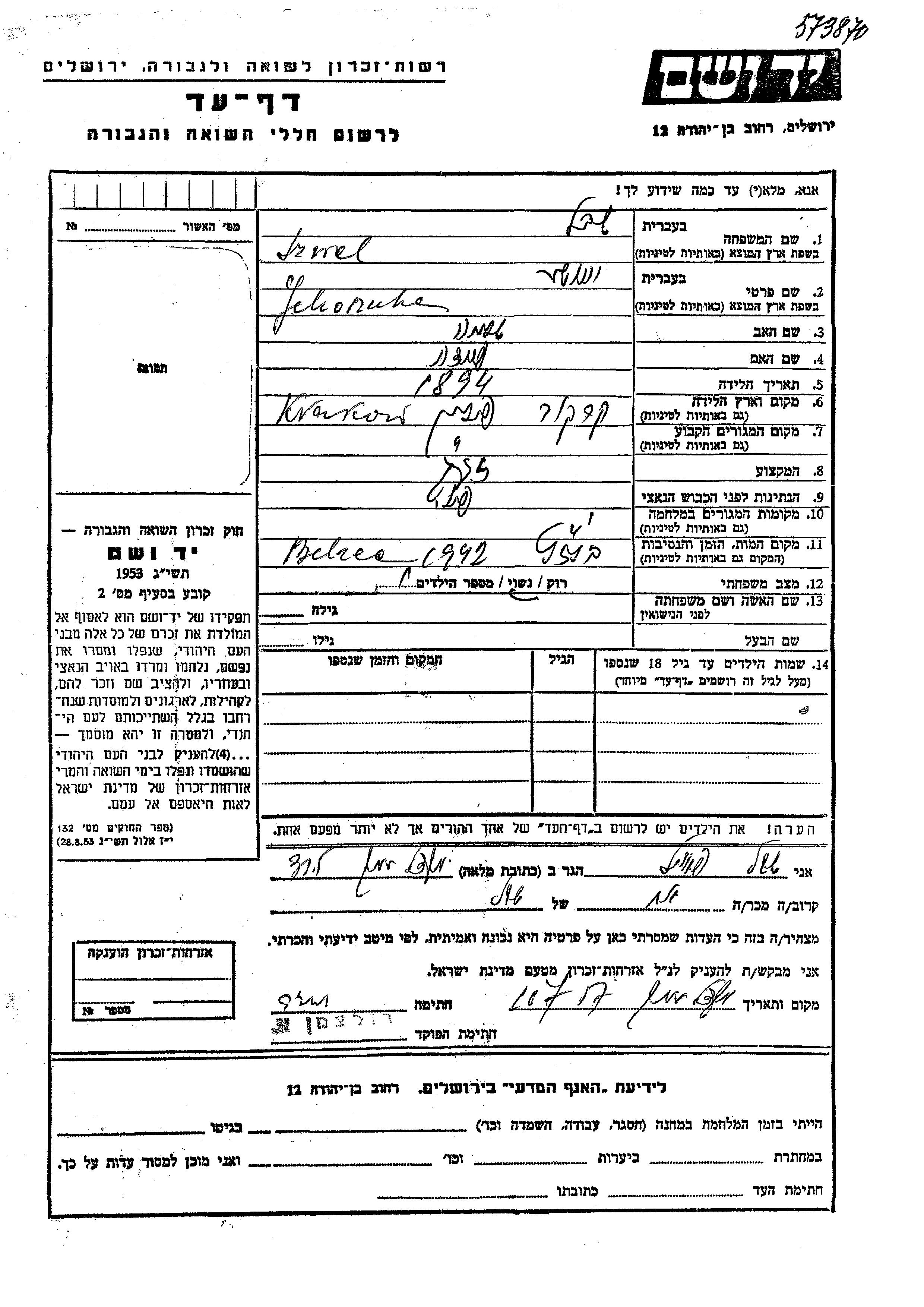 Яд Вашем - Листы свидетельских показаний Мемориального фонда