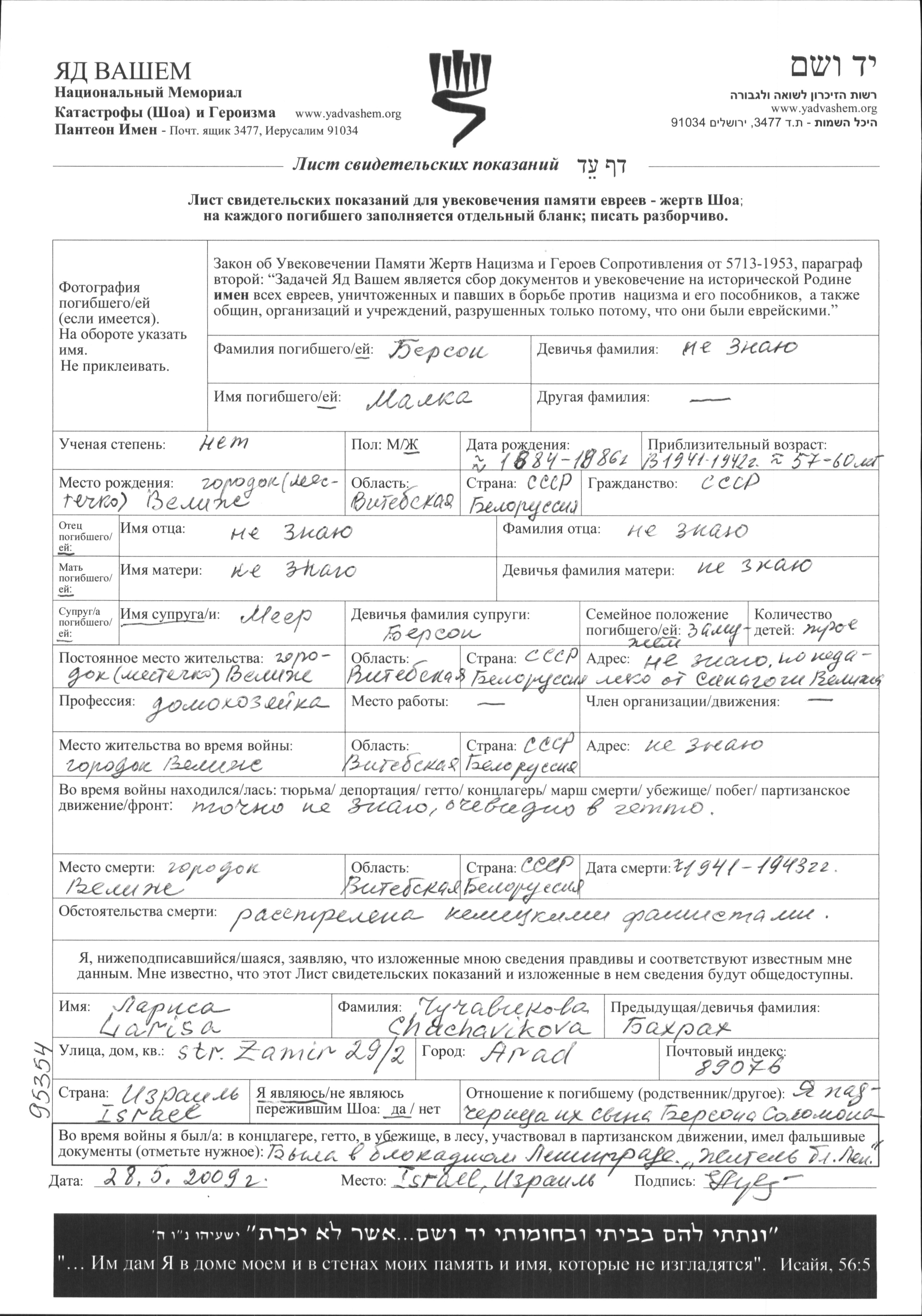 Поиск подателя Листа свидетельских показаний. Поиск по любому имени, включая уменьшительное или прозвище