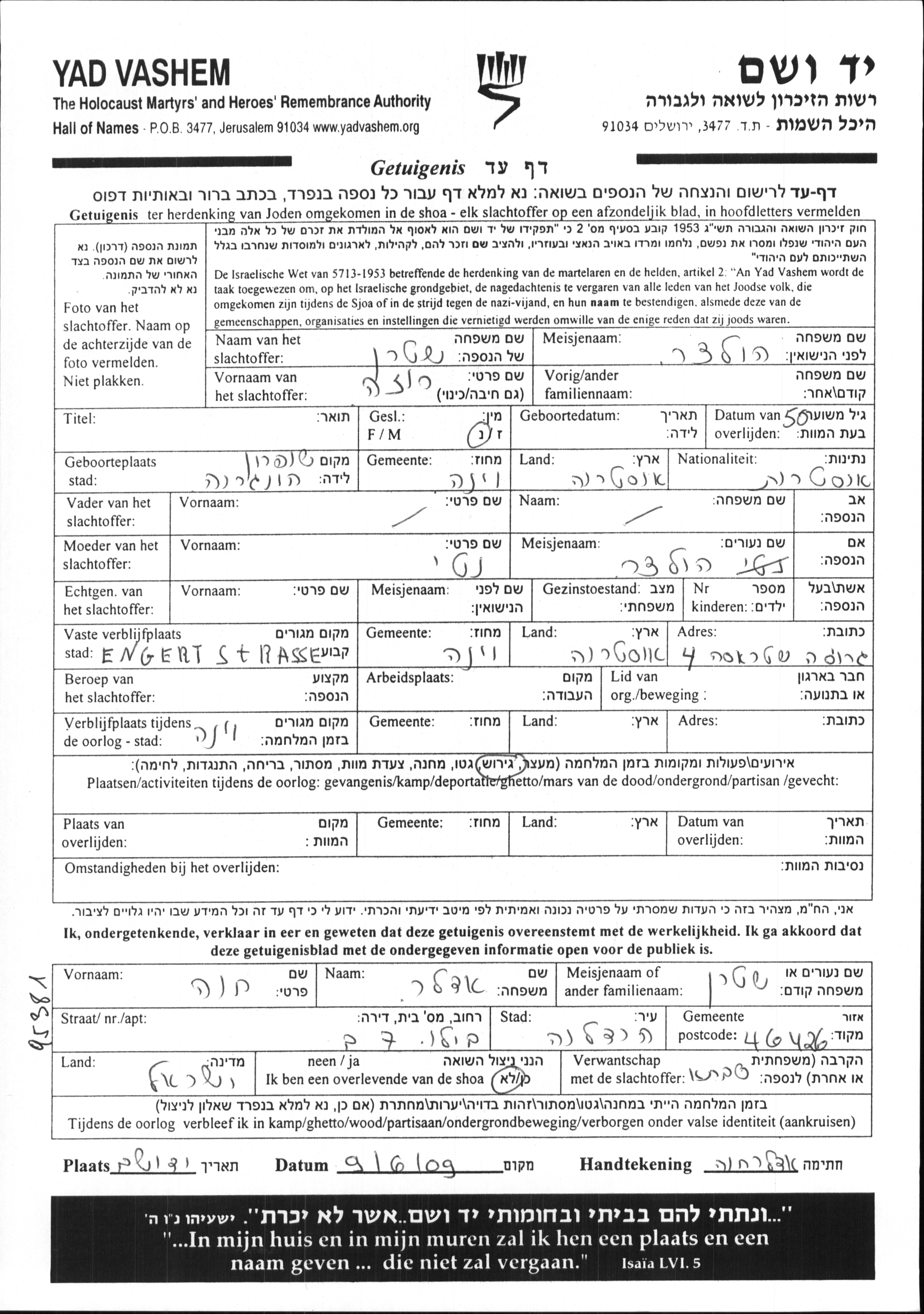 Яд Вашем - Листы свидетельских показаний Мемориального фонда