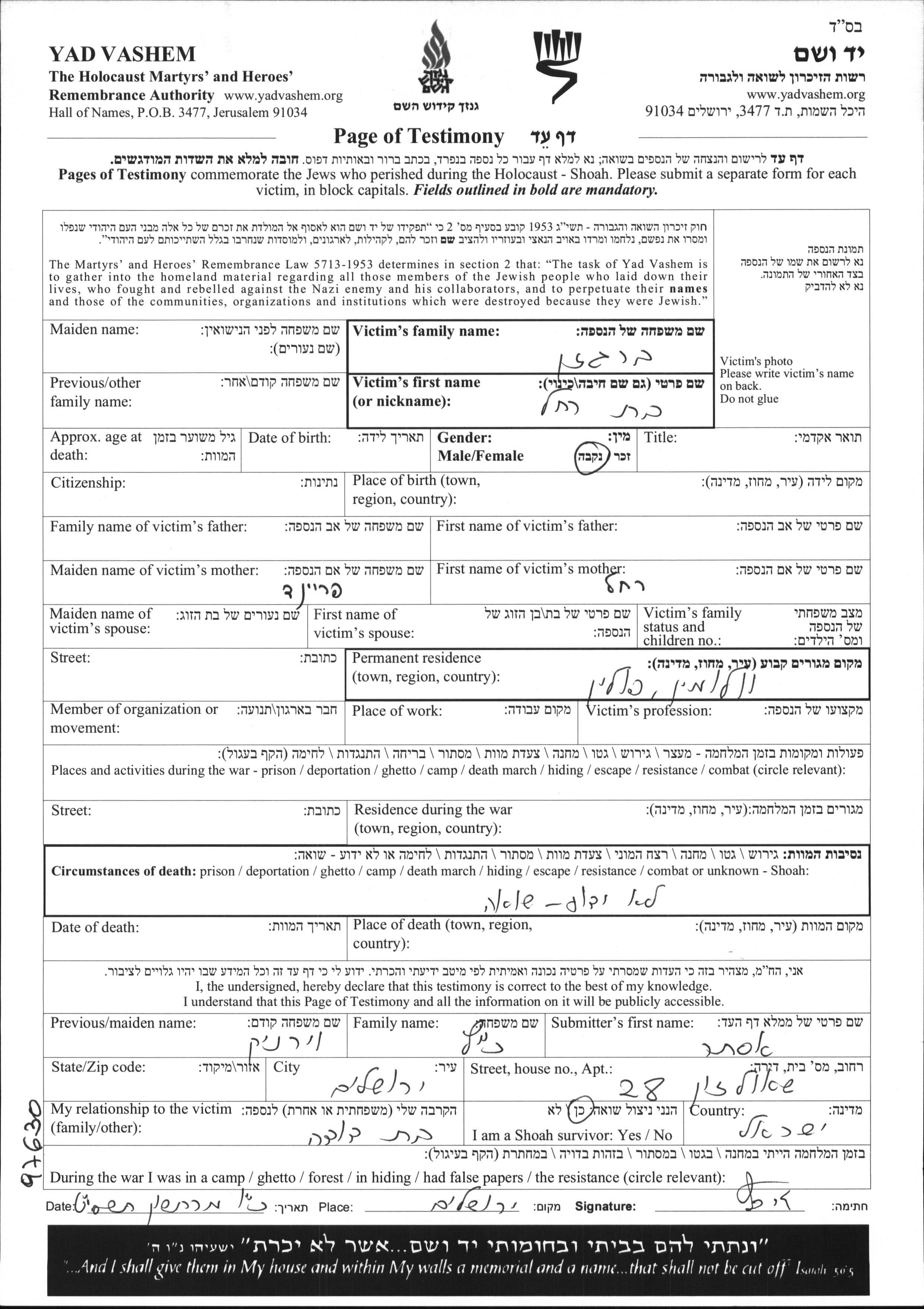 Яд Вашем - Листы свидетельских показаний Мемориального фонда