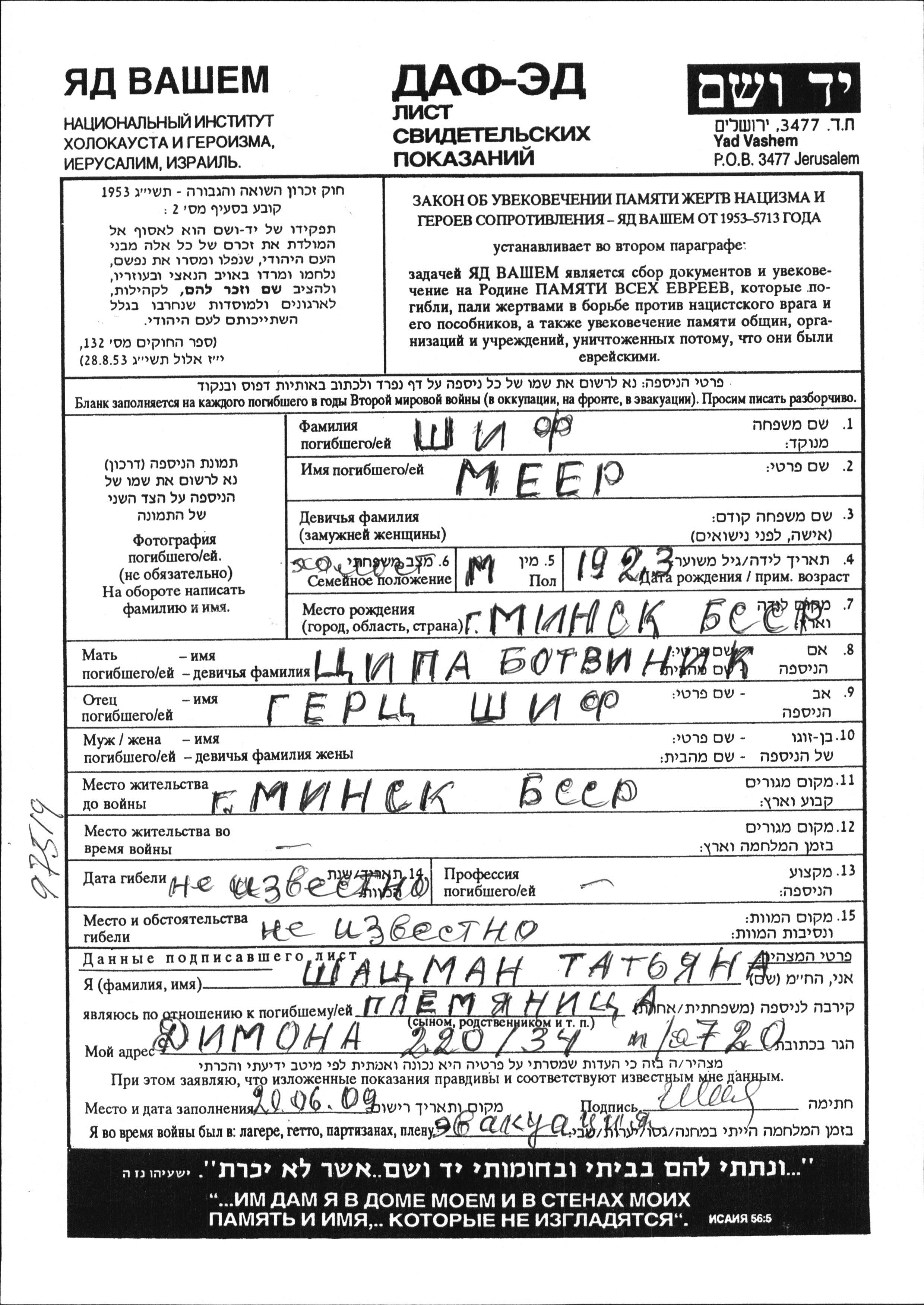 Поиск подателя Листа свидетельских показаний. Поиск по любому имени, включая уменьшительное или прозвище
