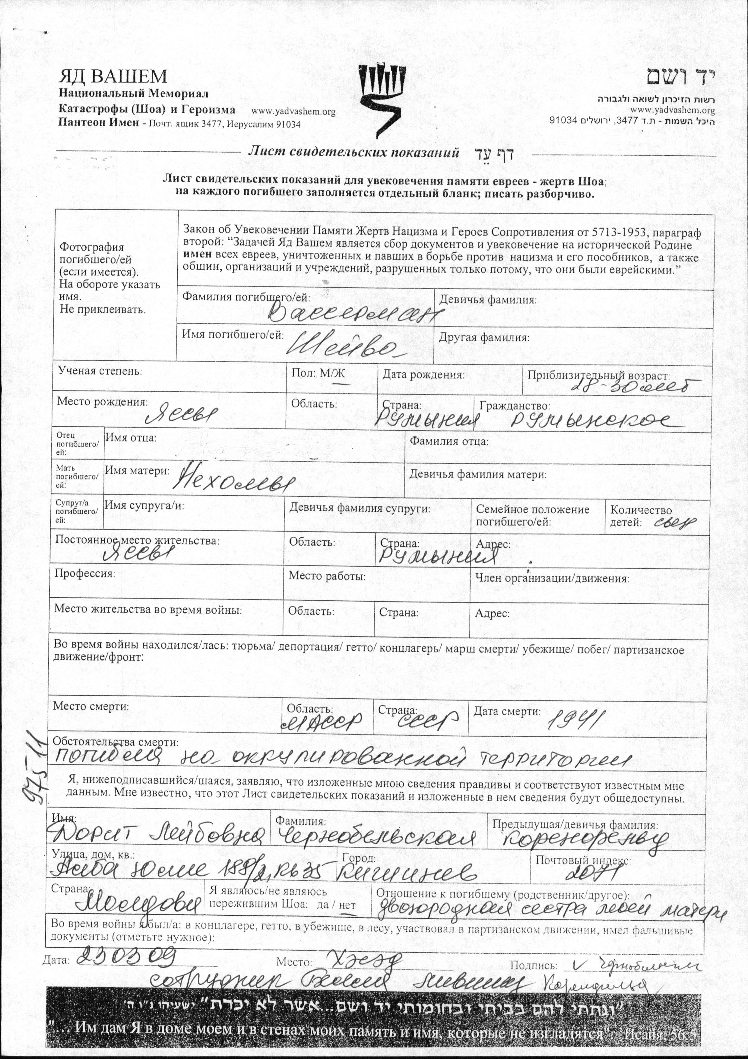 Поиск подателя Листа свидетельских показаний. Поиск по любому имени, включая уменьшительное или прозвище