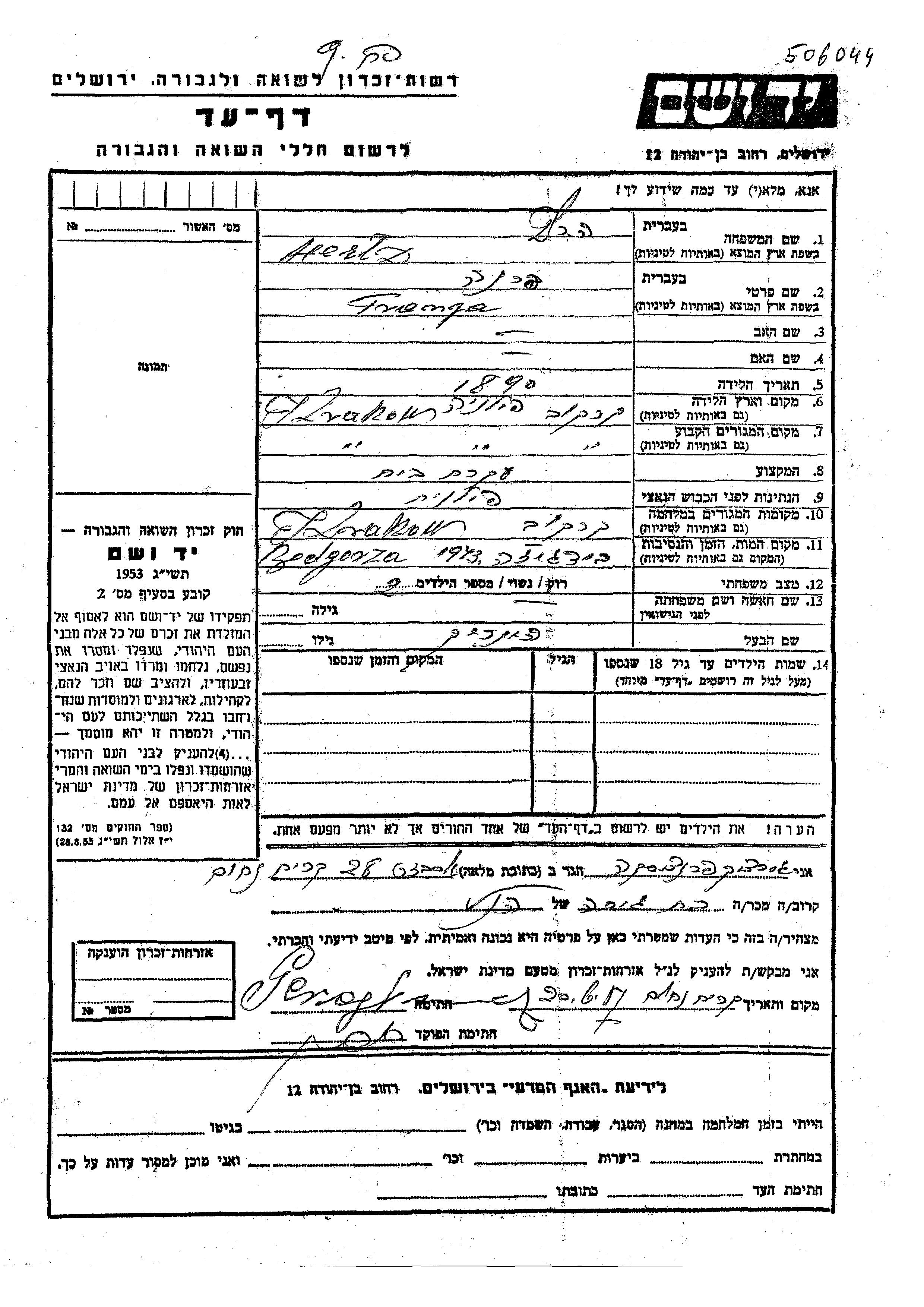 Яд Вашем - Листы свидетельских показаний Мемориального фонда