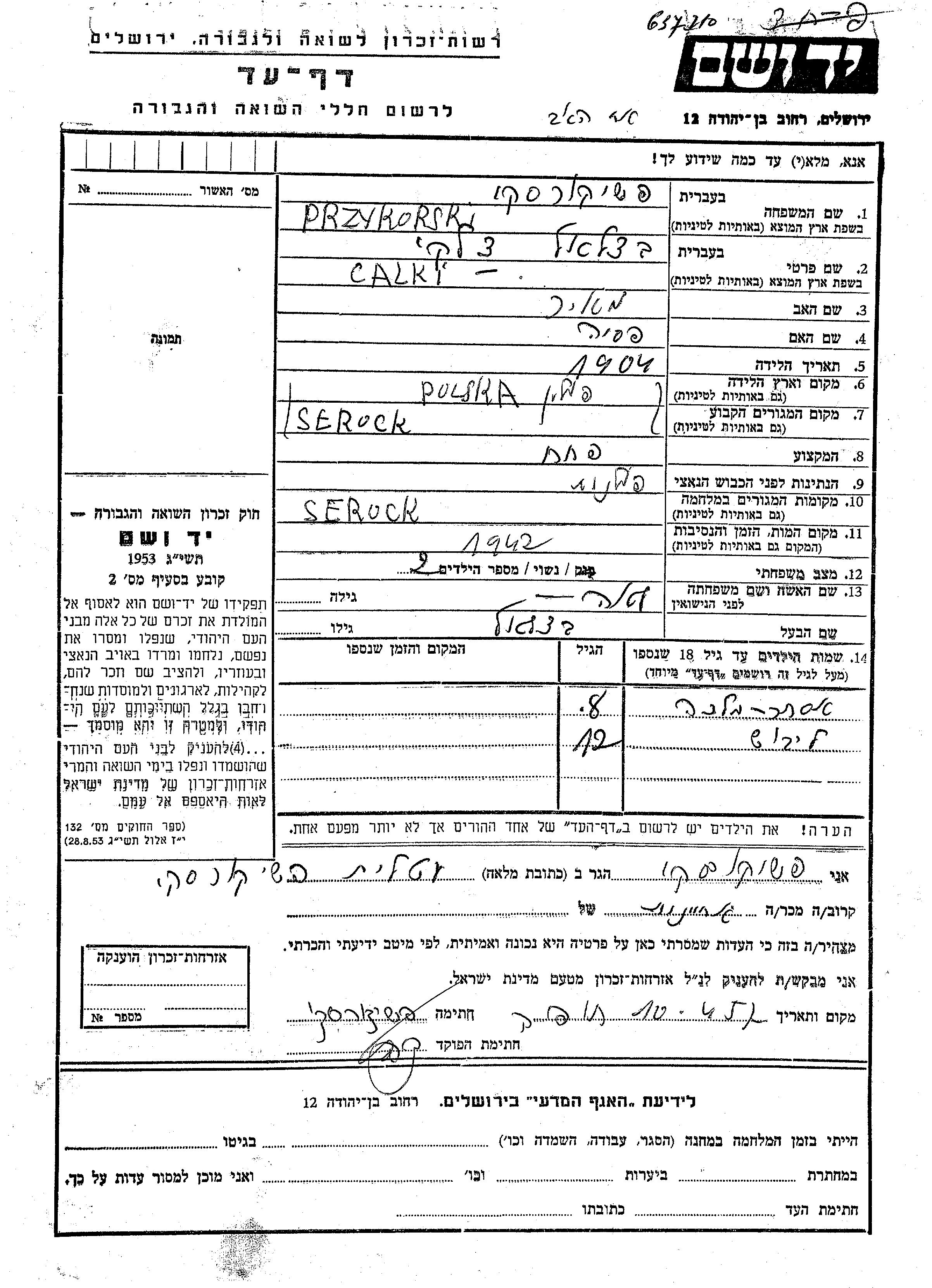Пшикорски Лейбуш Сероцк, Польша Лист свидетельских показаний