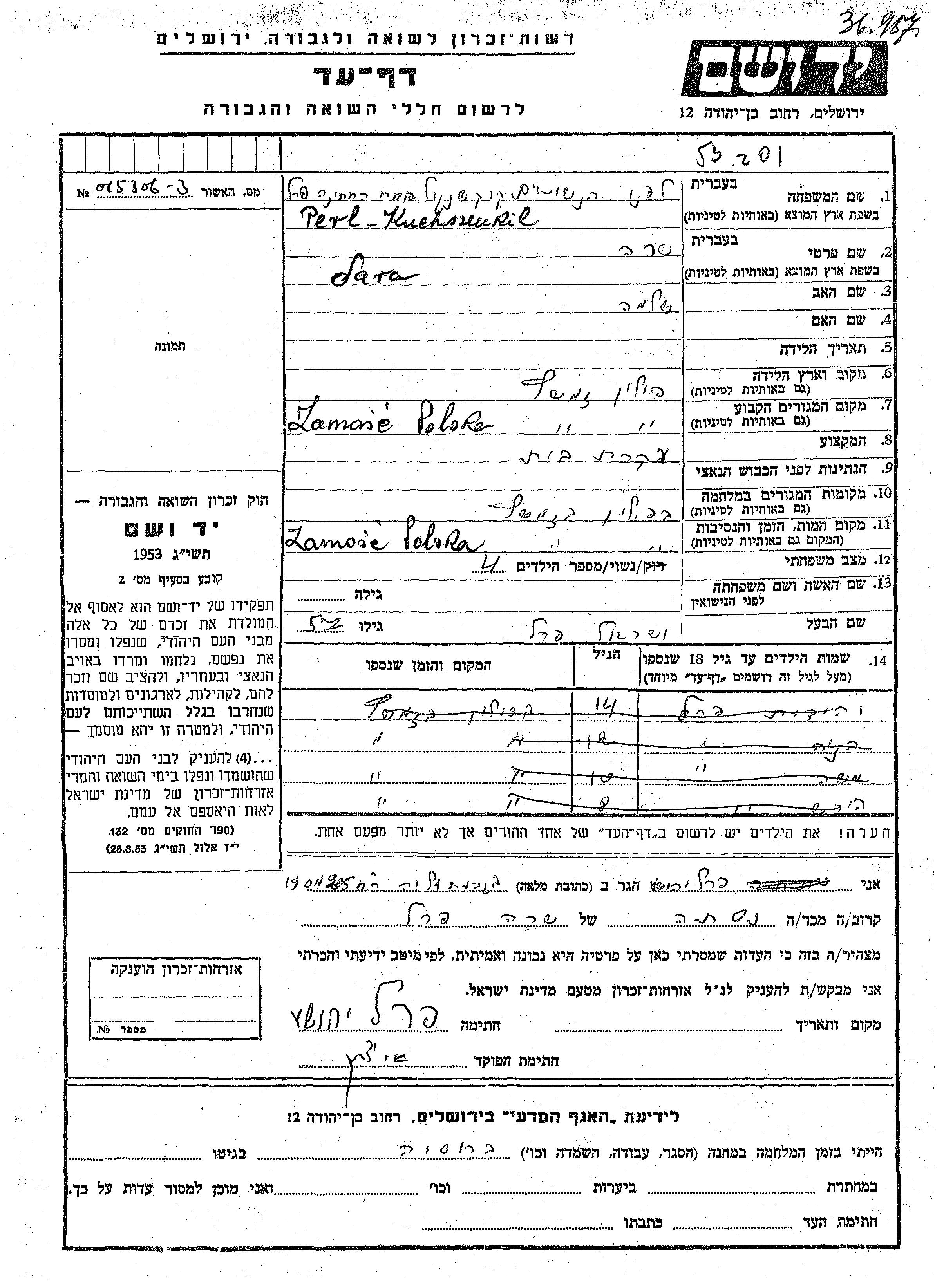Яд Вашем - Листы свидетельских показаний Мемориального фонда