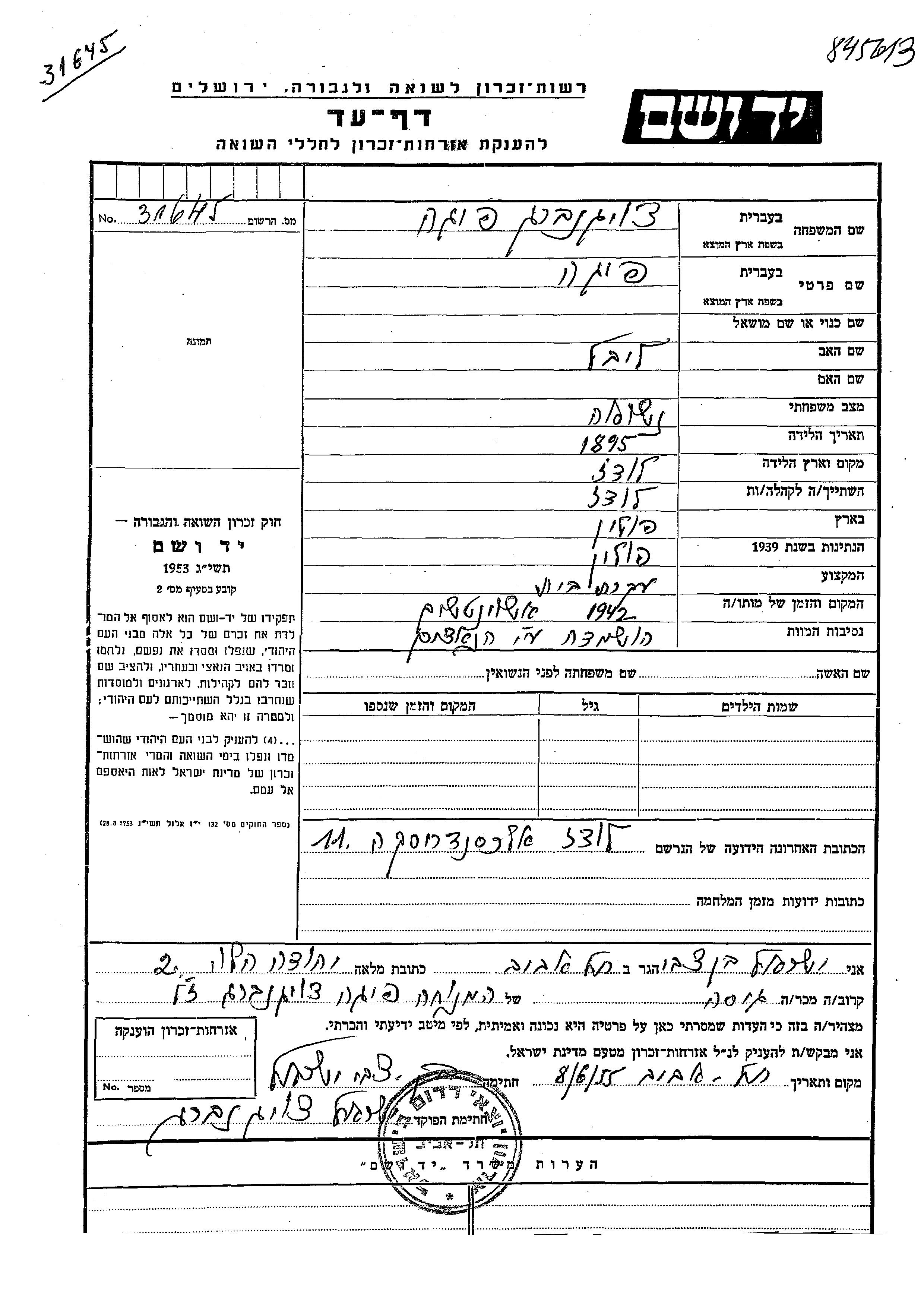 Яд Вашем - Листы свидетельских показаний Мемориального фонда