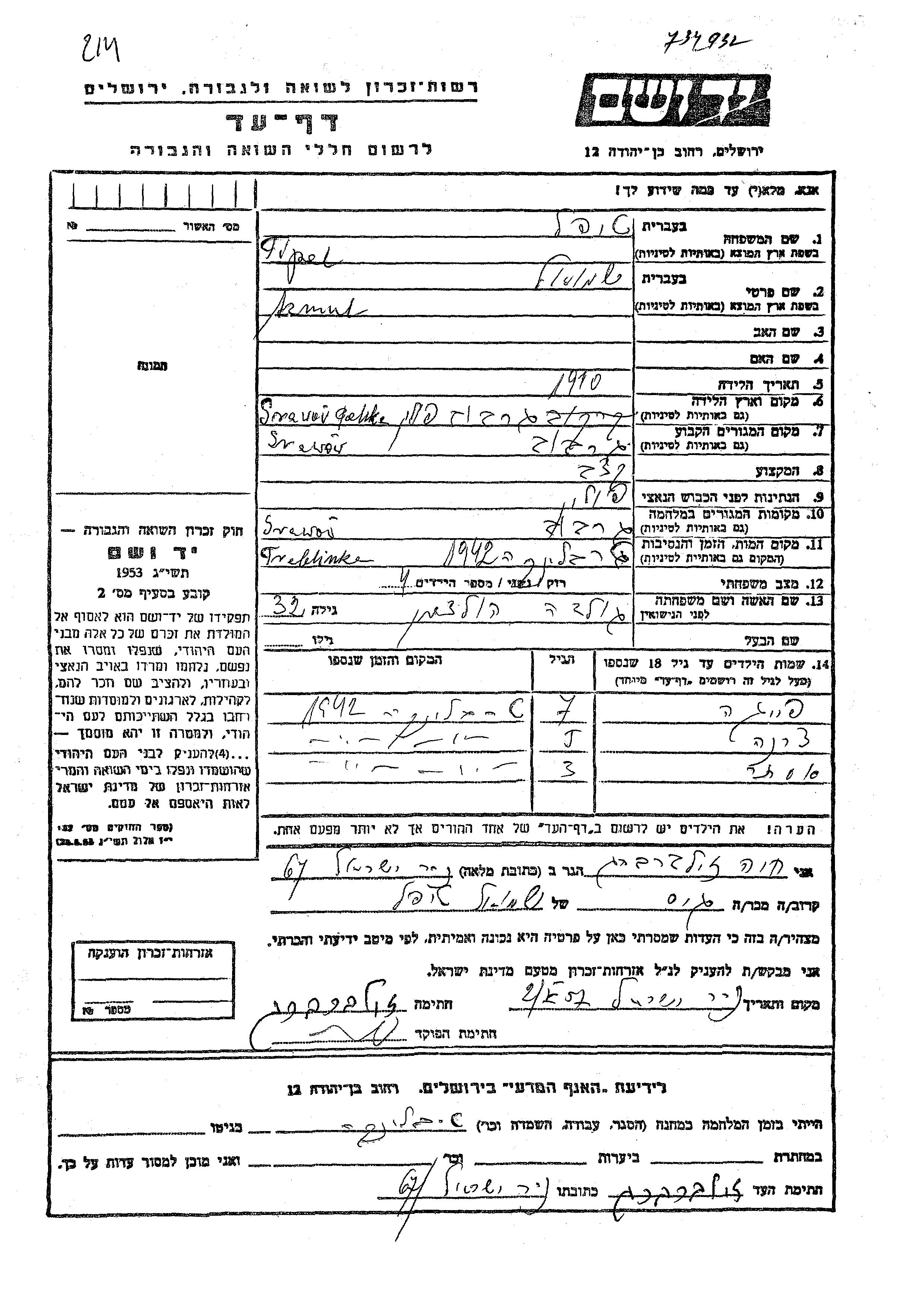 Яд Вашем - Листы свидетельских показаний Мемориального фонда