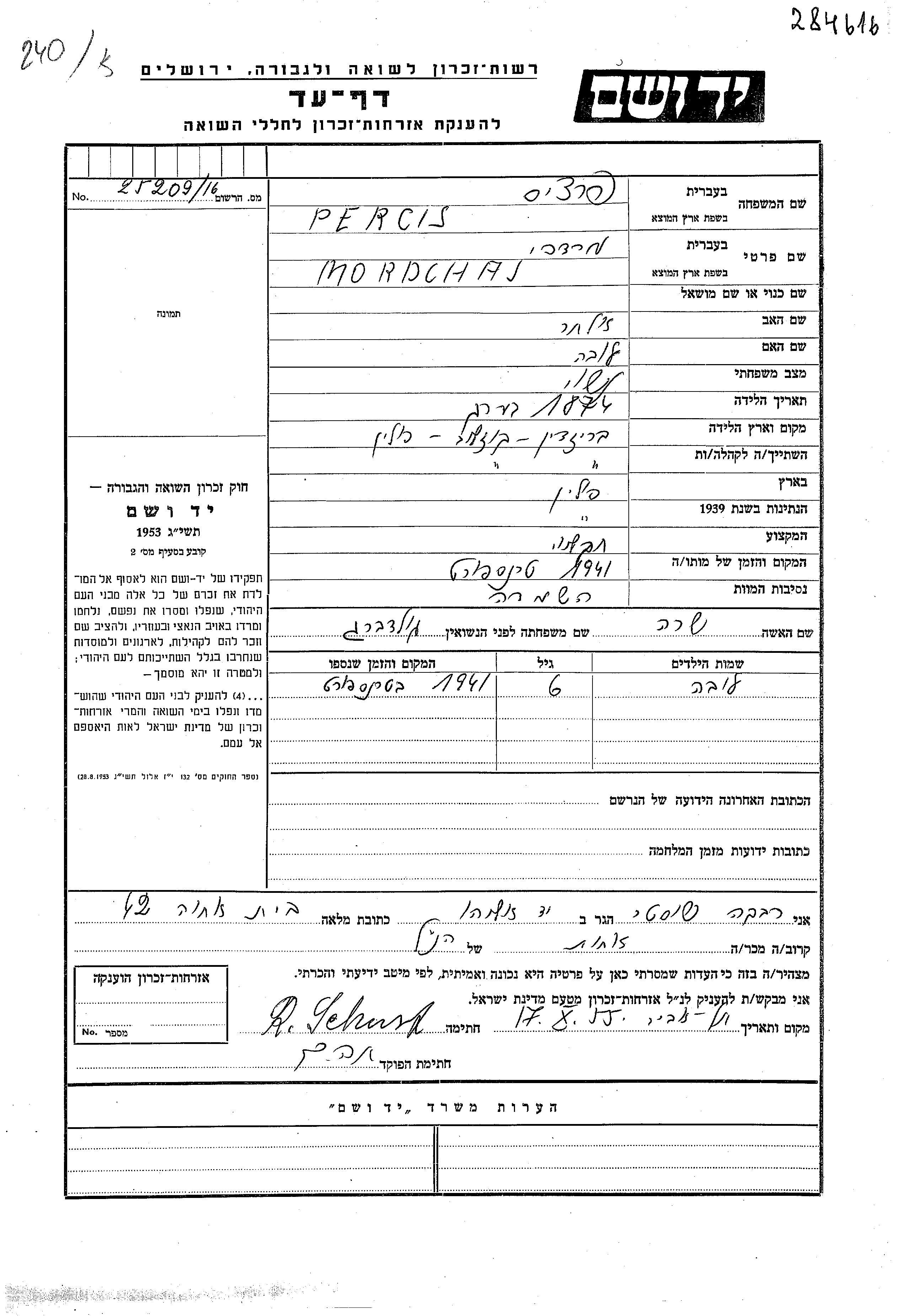 Яд Вашем - Листы свидетельских показаний Мемориального фонда