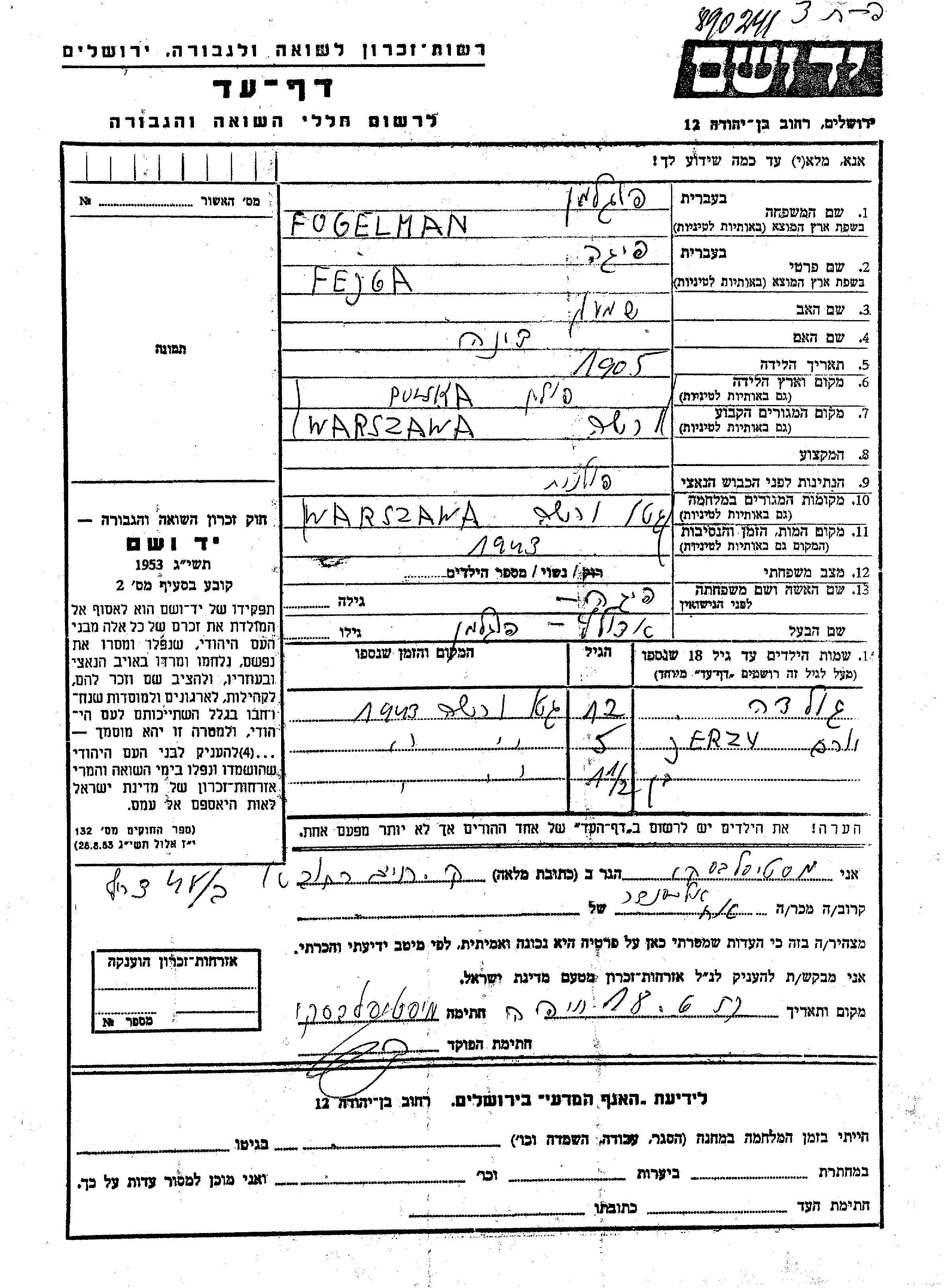 Фогельман Ежи Йорам Варшава, Польша Лист свидетельских показаний