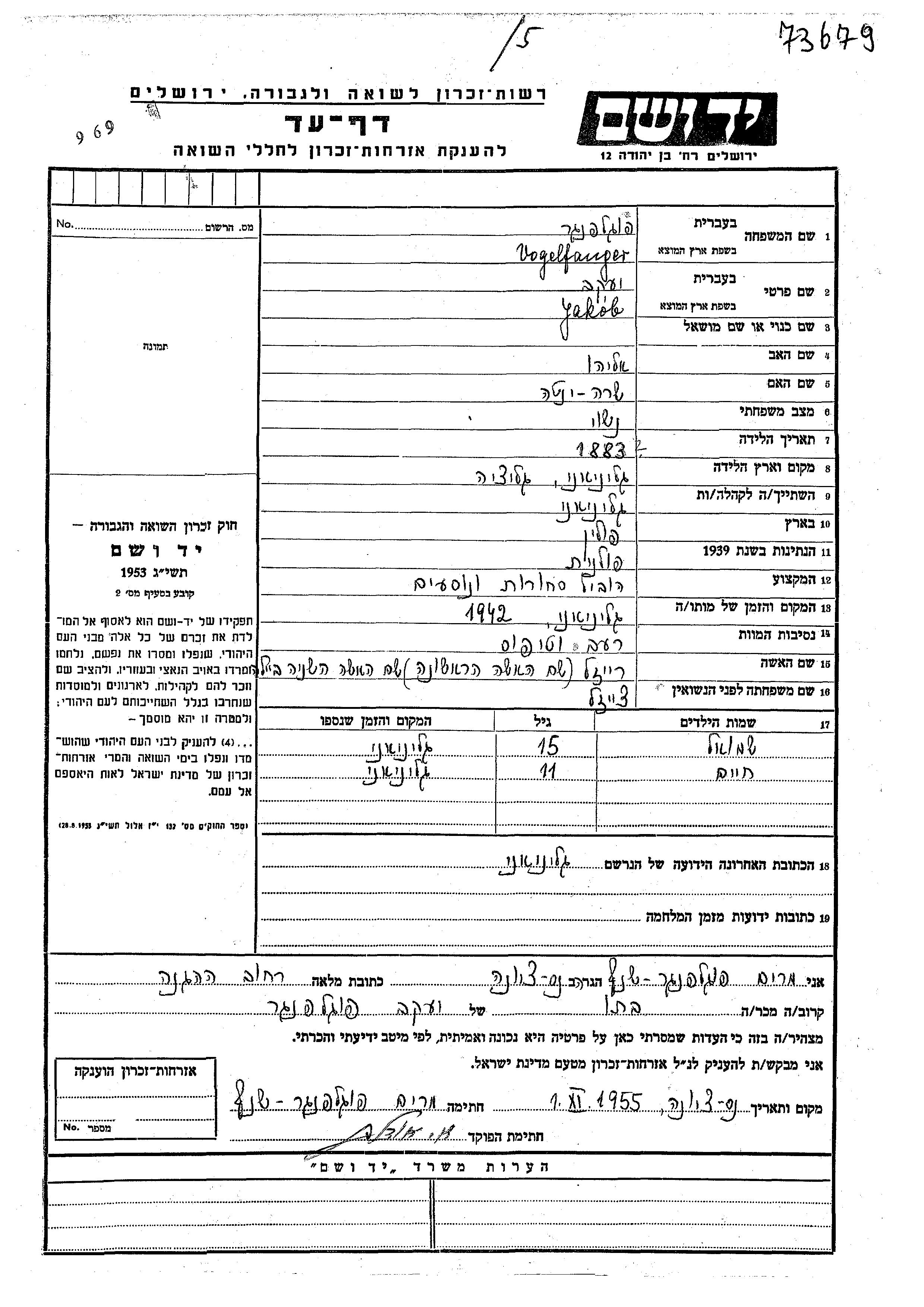 Фогельфангер Шмуэль Глиняны, Польша Лист свидетельских показаний