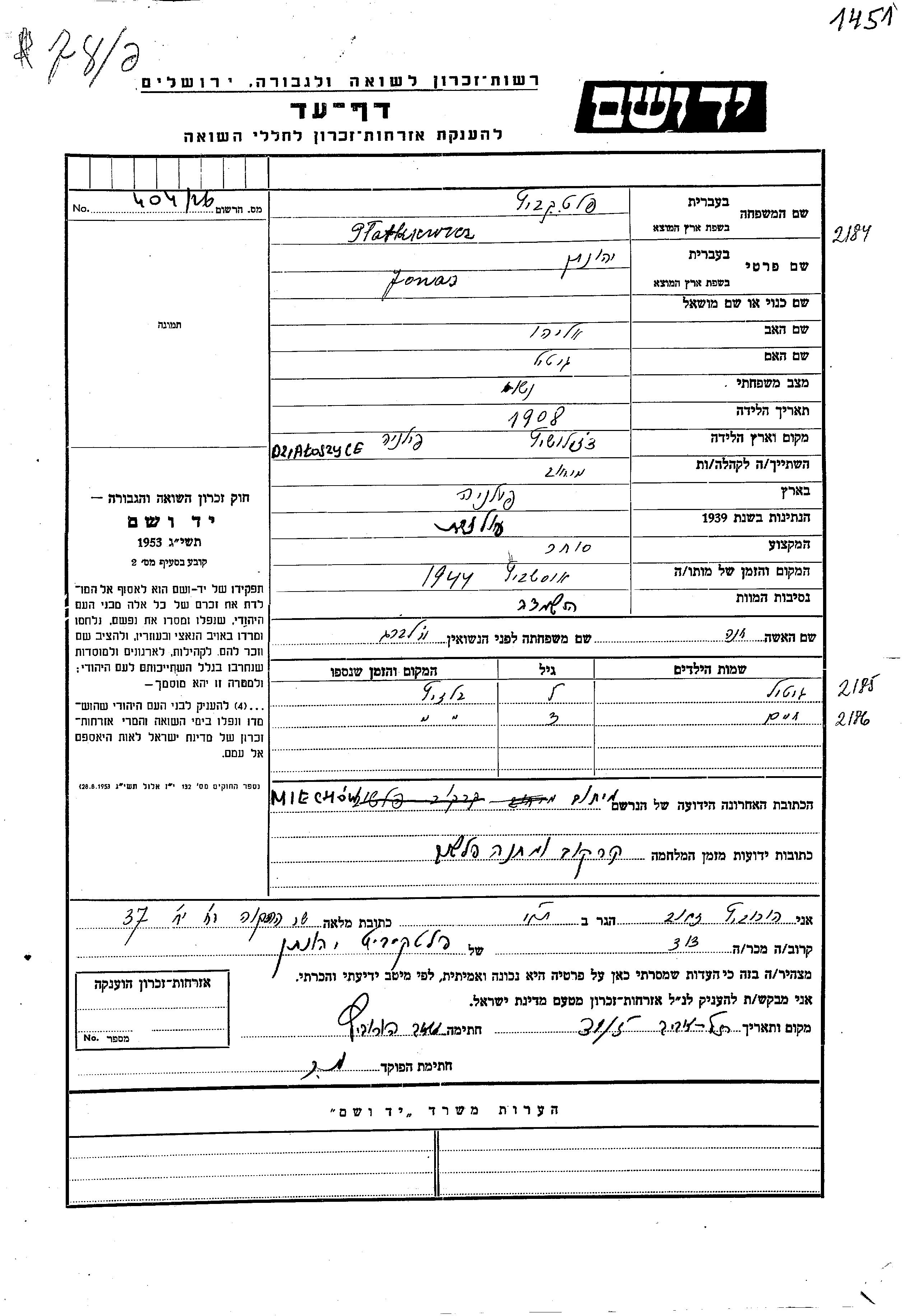 Яд Вашем - Листы свидетельских показаний Мемориального фонда