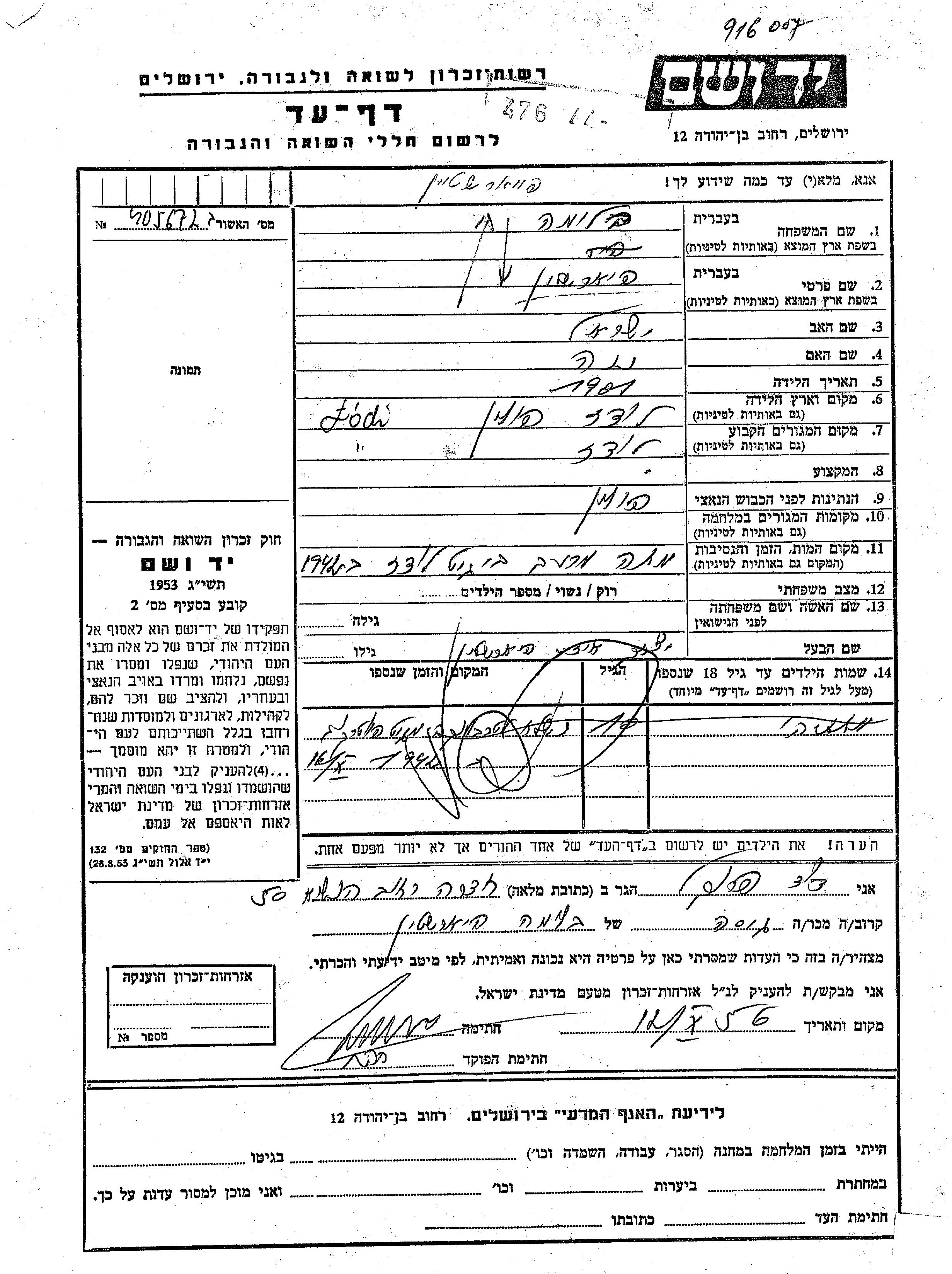 Яд Вашем - Листы свидетельских показаний Мемориального фонда
