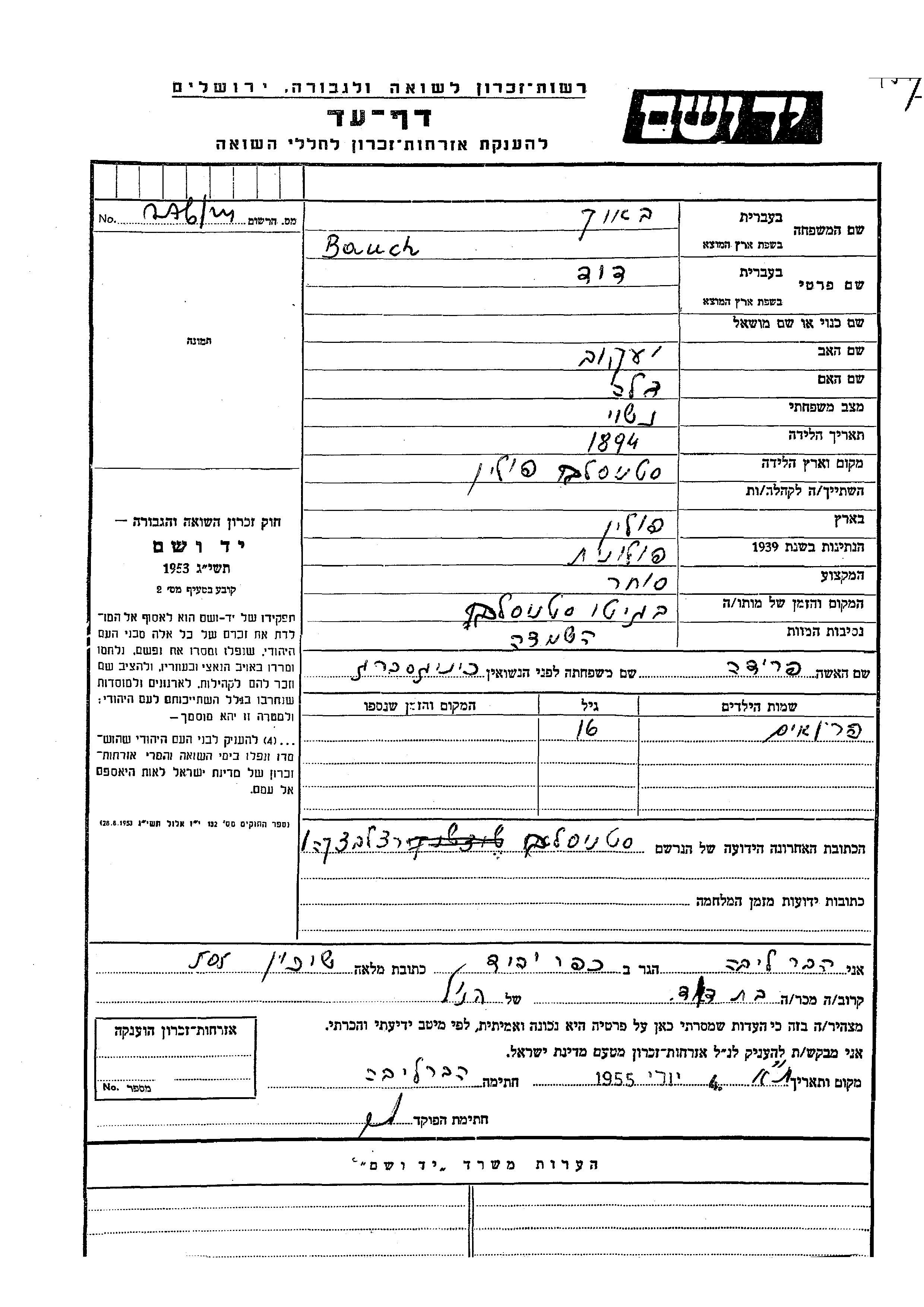 Баух Фройм Станислав, Польша Лист свидетельских показаний
