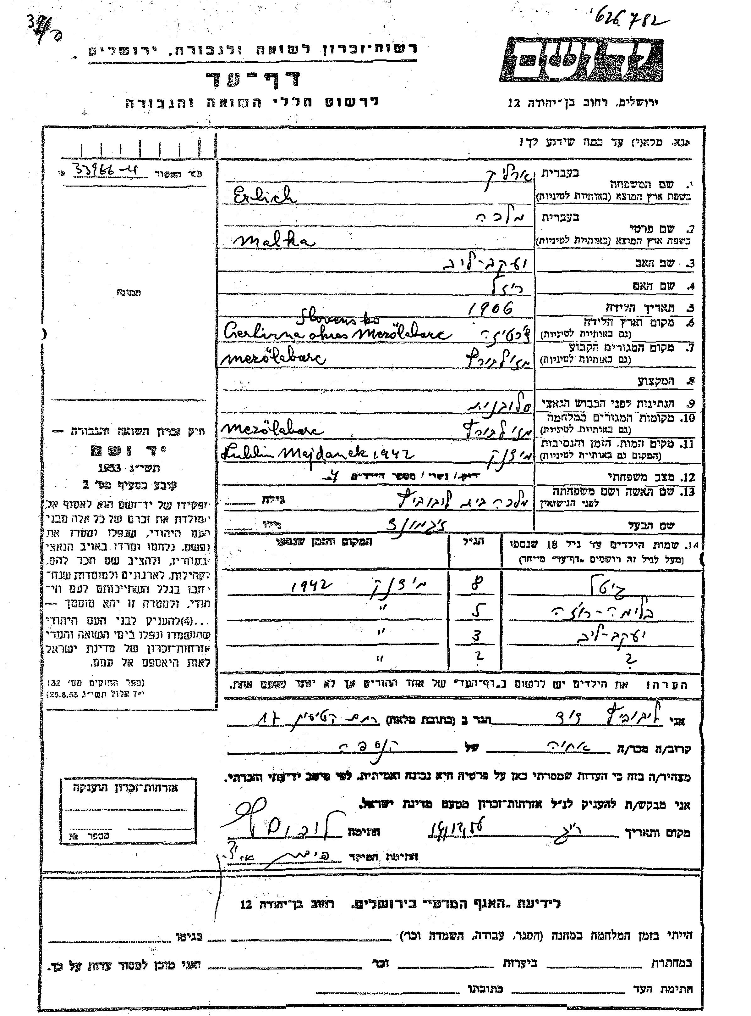 Эрлих Блима Роза Мезолаборц, Чехословакия Лист свидетельских показаний