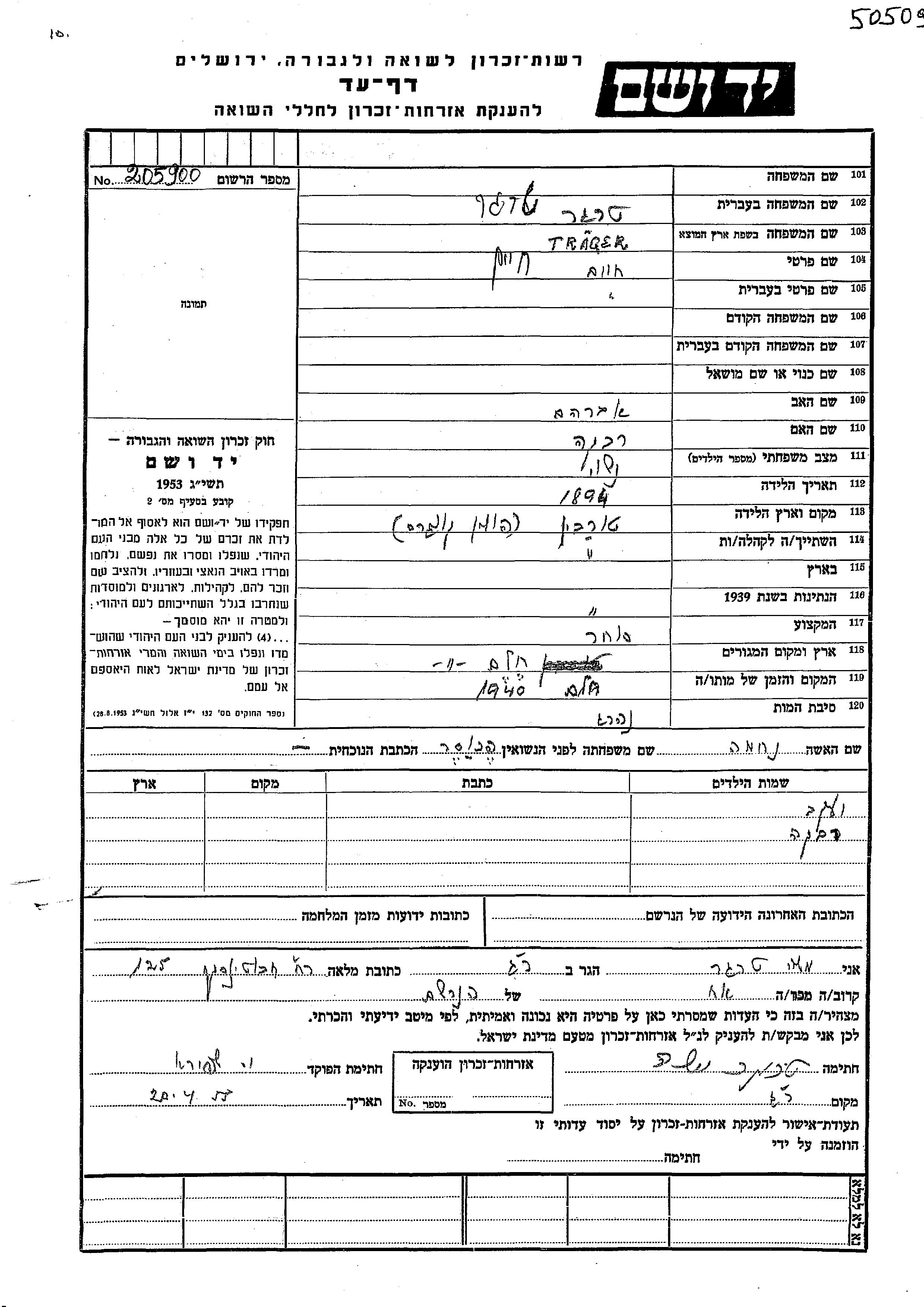 Яд Вашем - Листы свидетельских показаний Мемориального фонда