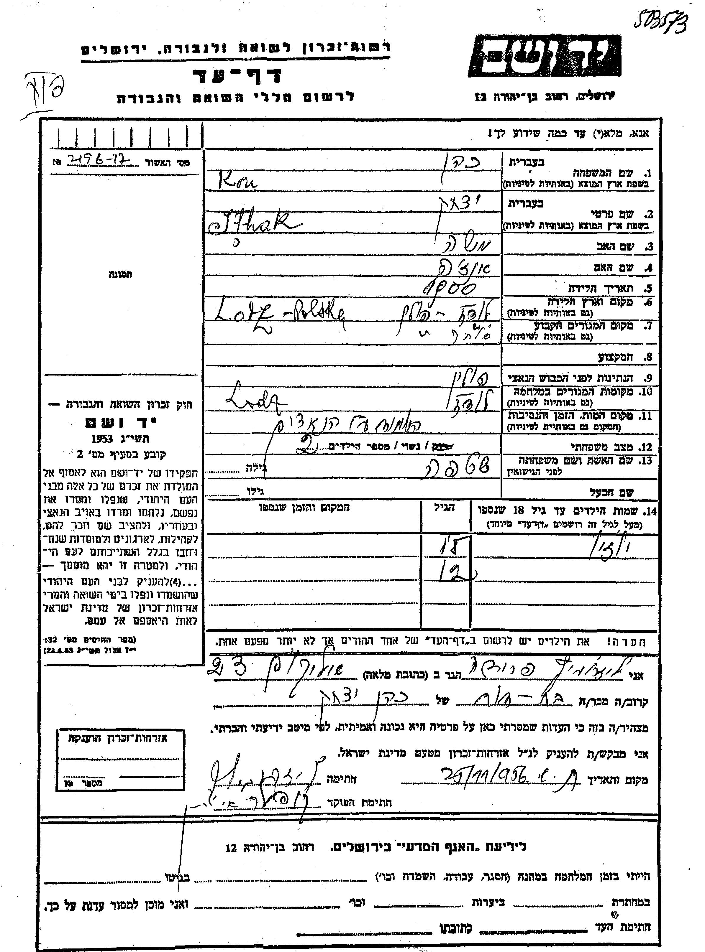 Яд Вашем - Листы свидетельских показаний Мемориального фонда