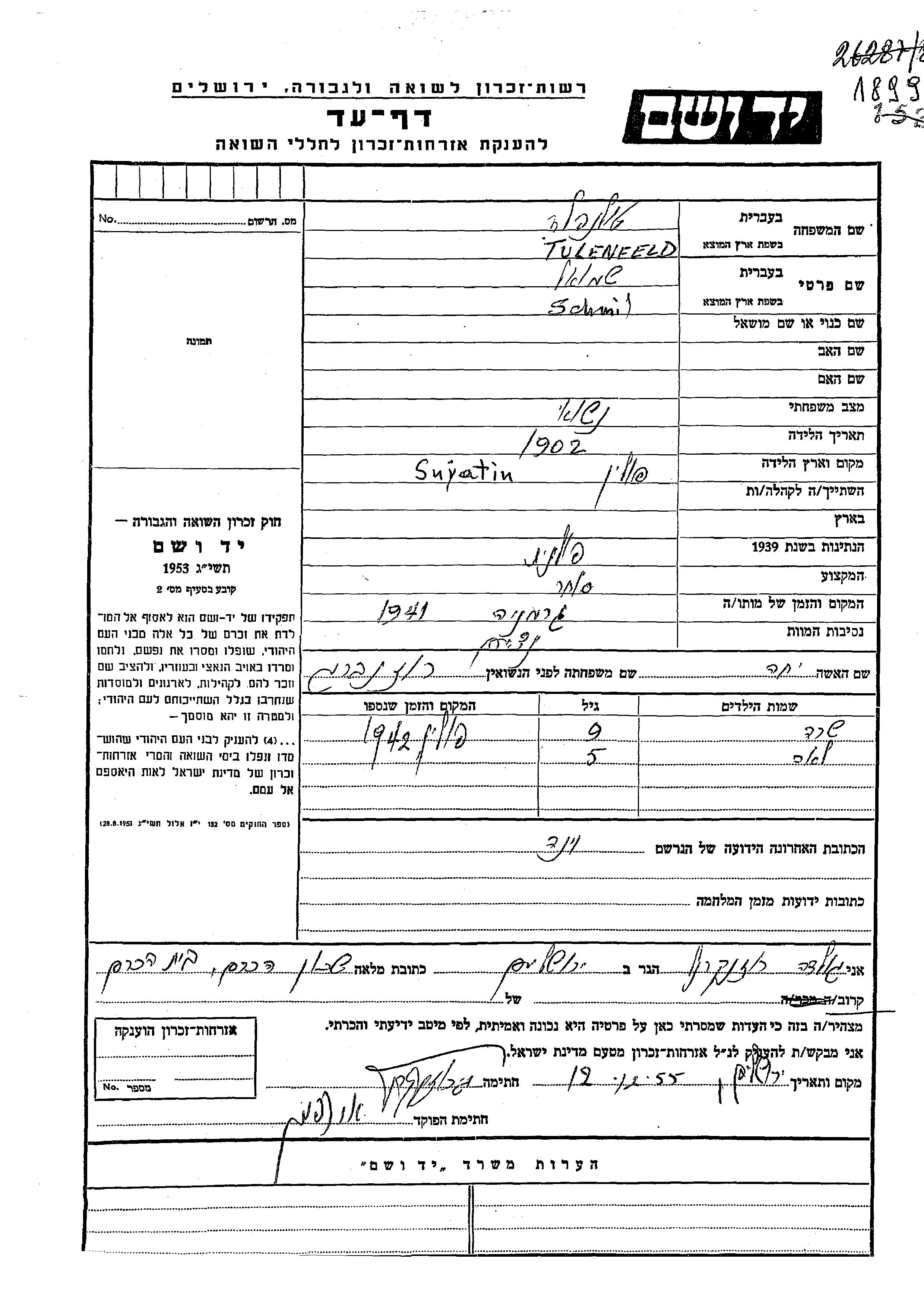 Яд Вашем - Листы свидетельских показаний Мемориального фонда