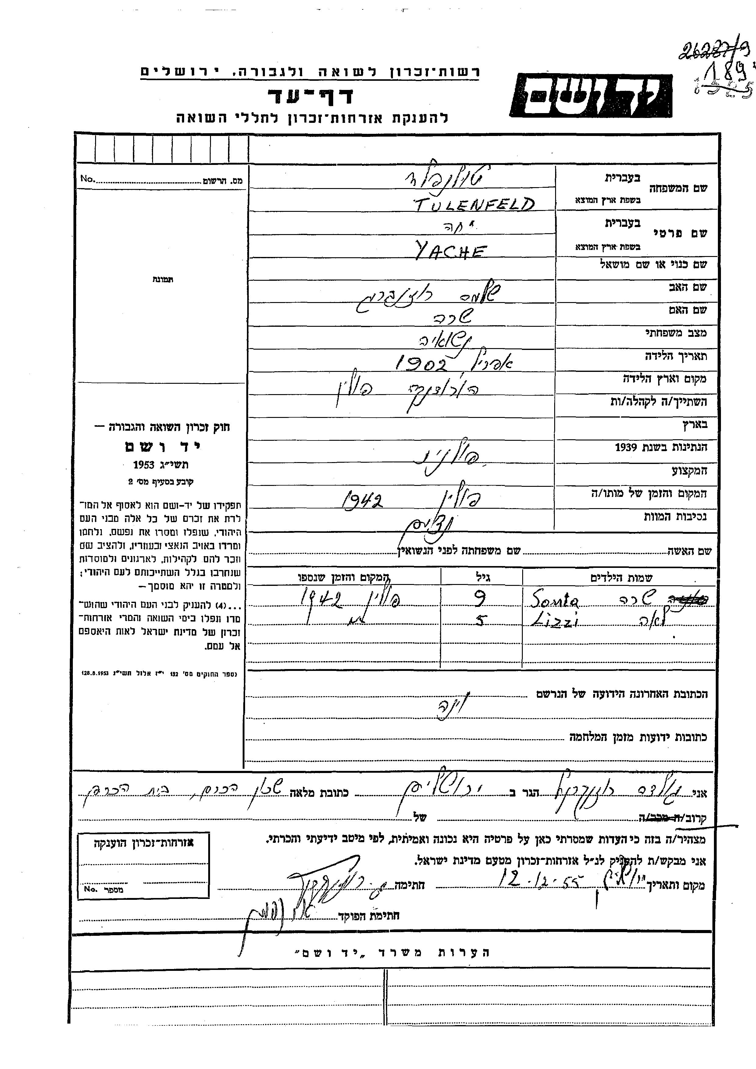 Яд Вашем - Листы свидетельских показаний Мемориального фонда