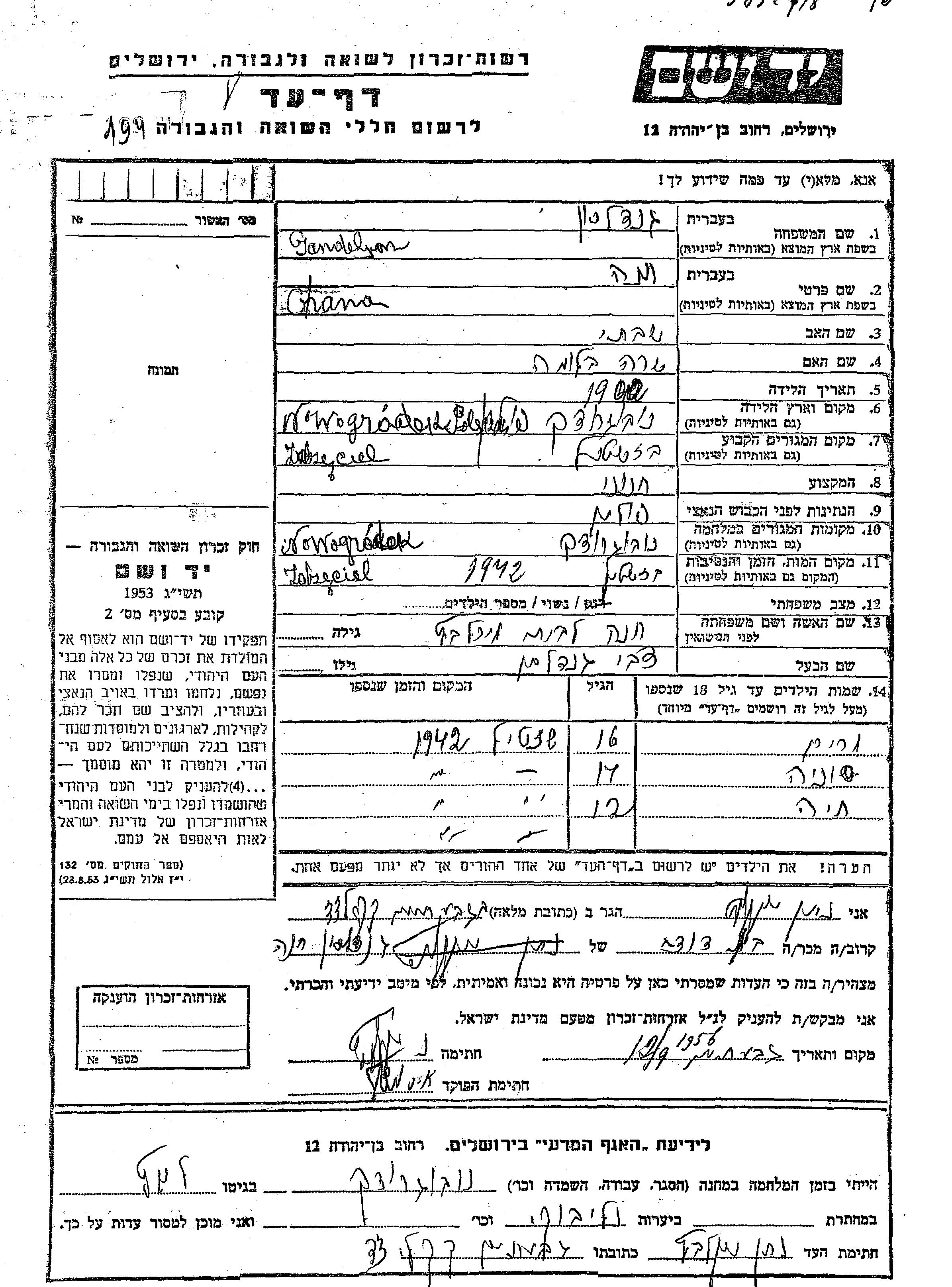 Яд Вашем - Листы свидетельских показаний Мемориального фонда