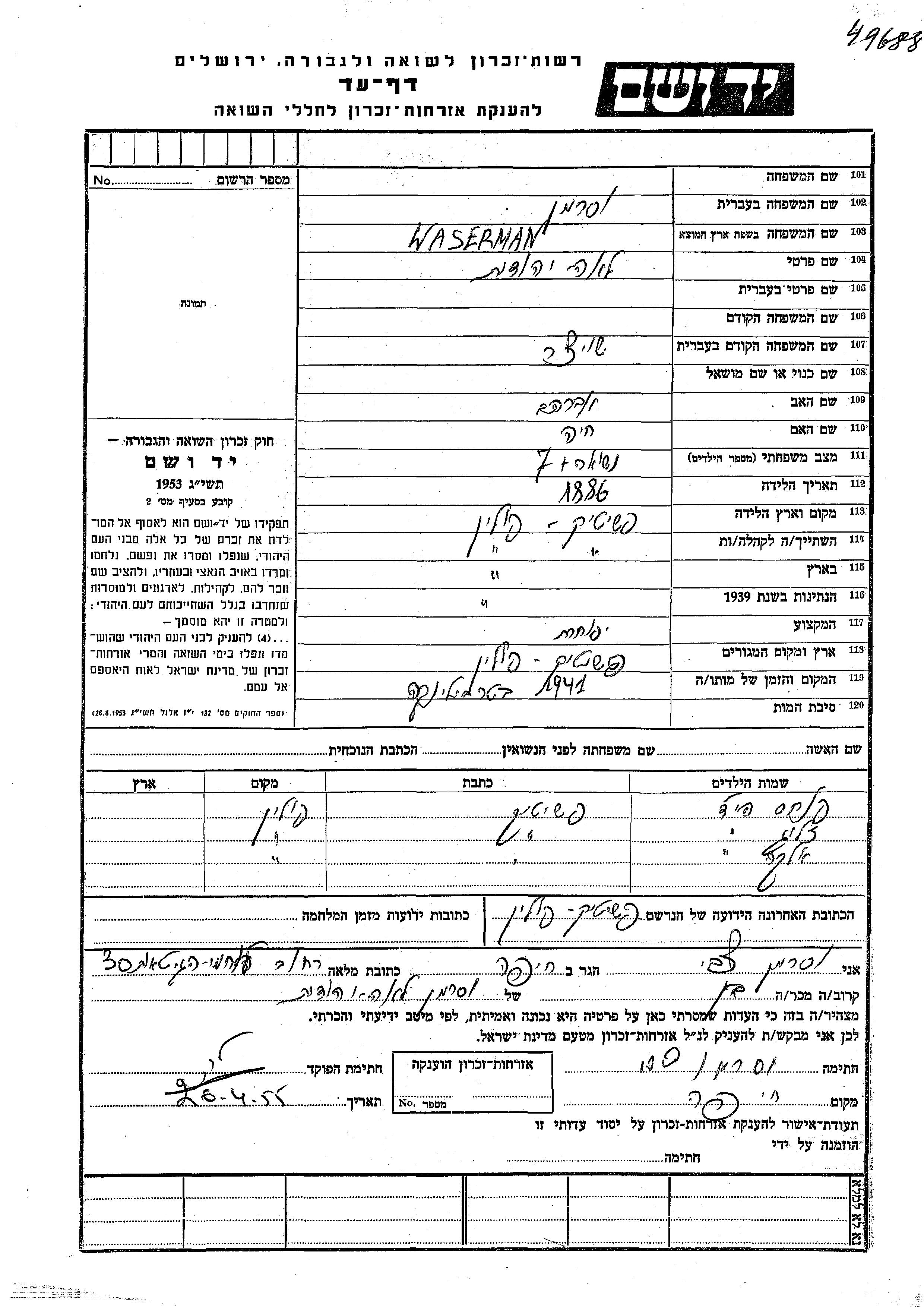 Яд Вашем - Листы свидетельских показаний Мемориального фонда