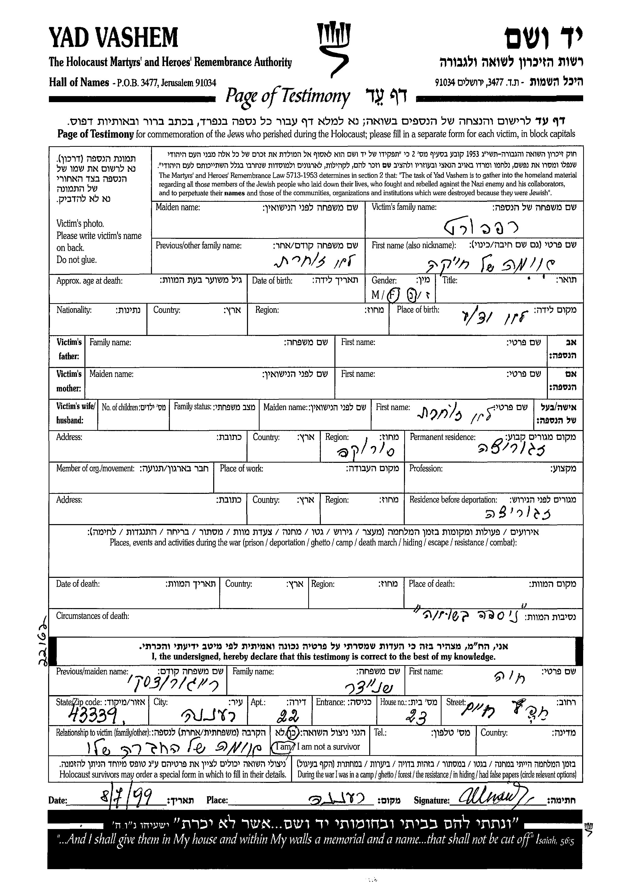 Во время Шоа евреев уничтожали разными способами: газовые камеры, расстрелы, их заживо хоронили или сжигали, непосильным принудительным трудом, голодом, эпидемиями, отсутствием минимальных гигиенических условий и медицинского обслуживания, и т.д. Некоторые евреи добровольно расстались со своей жизнью, чтобы избежать ареста и дальнейших преследований или чтобы покончить с безысходностью и бесконечными страданиями. Десятки тысяч еврейских солдат, служивших в Советской армии и попавших в плен, , были отобраны как евреи и убиты. Многие были зарегистрированы как «пропавшие без вести».