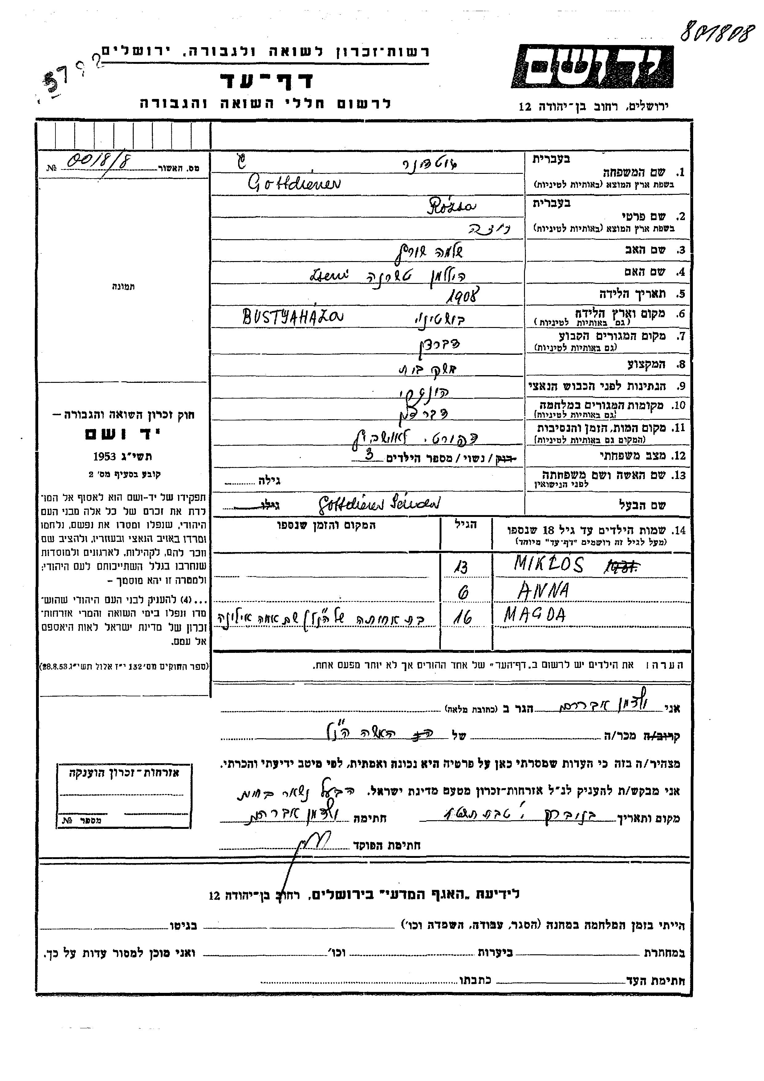 Готтдинер Магда место не указано, Лист свидетельских показаний