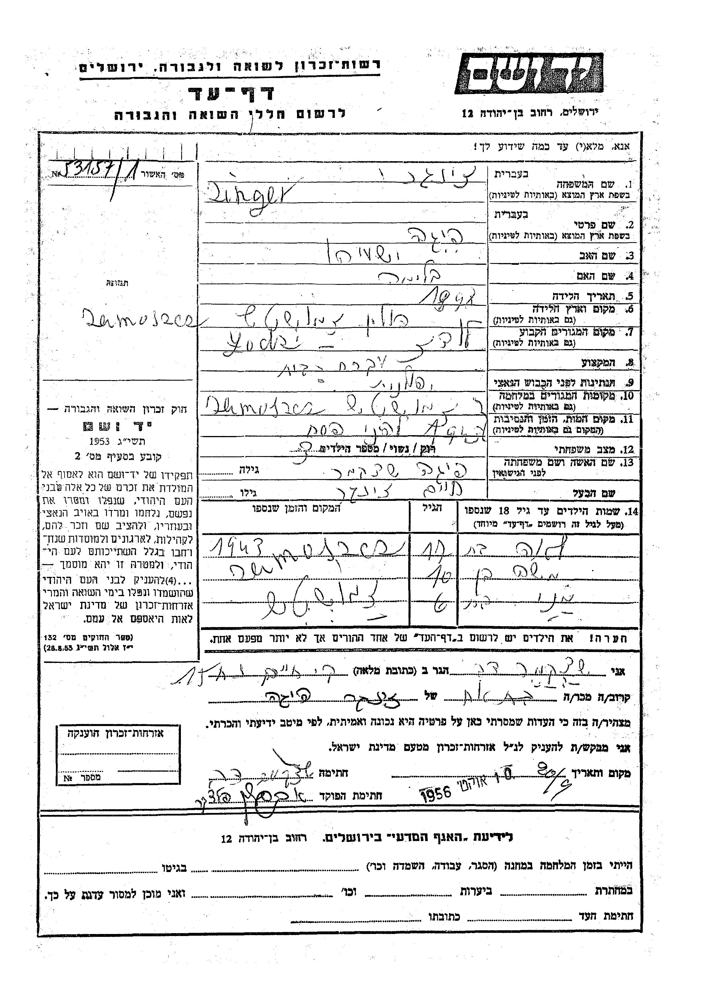 Яд Вашем - Листы свидетельских показаний Мемориального фонда