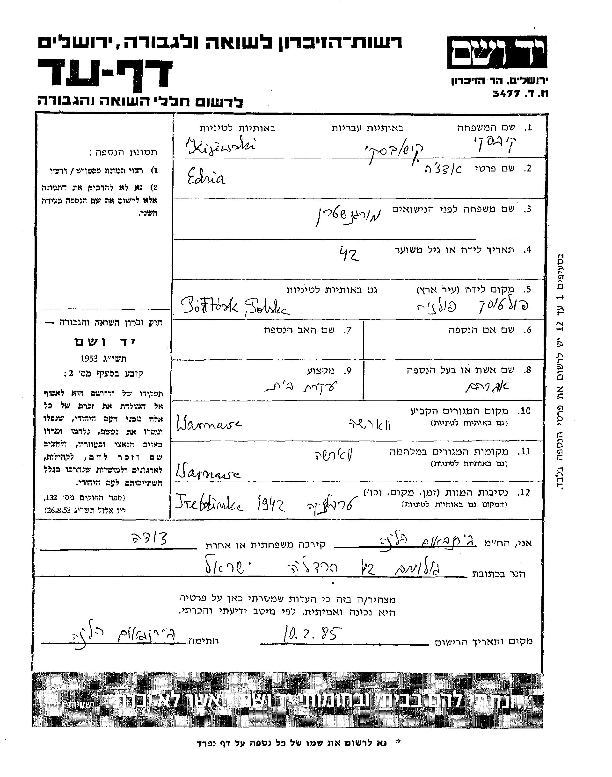 Эдзя уничтоженa в период Шоа. место смерти: Треблинка, Польша в 1942.