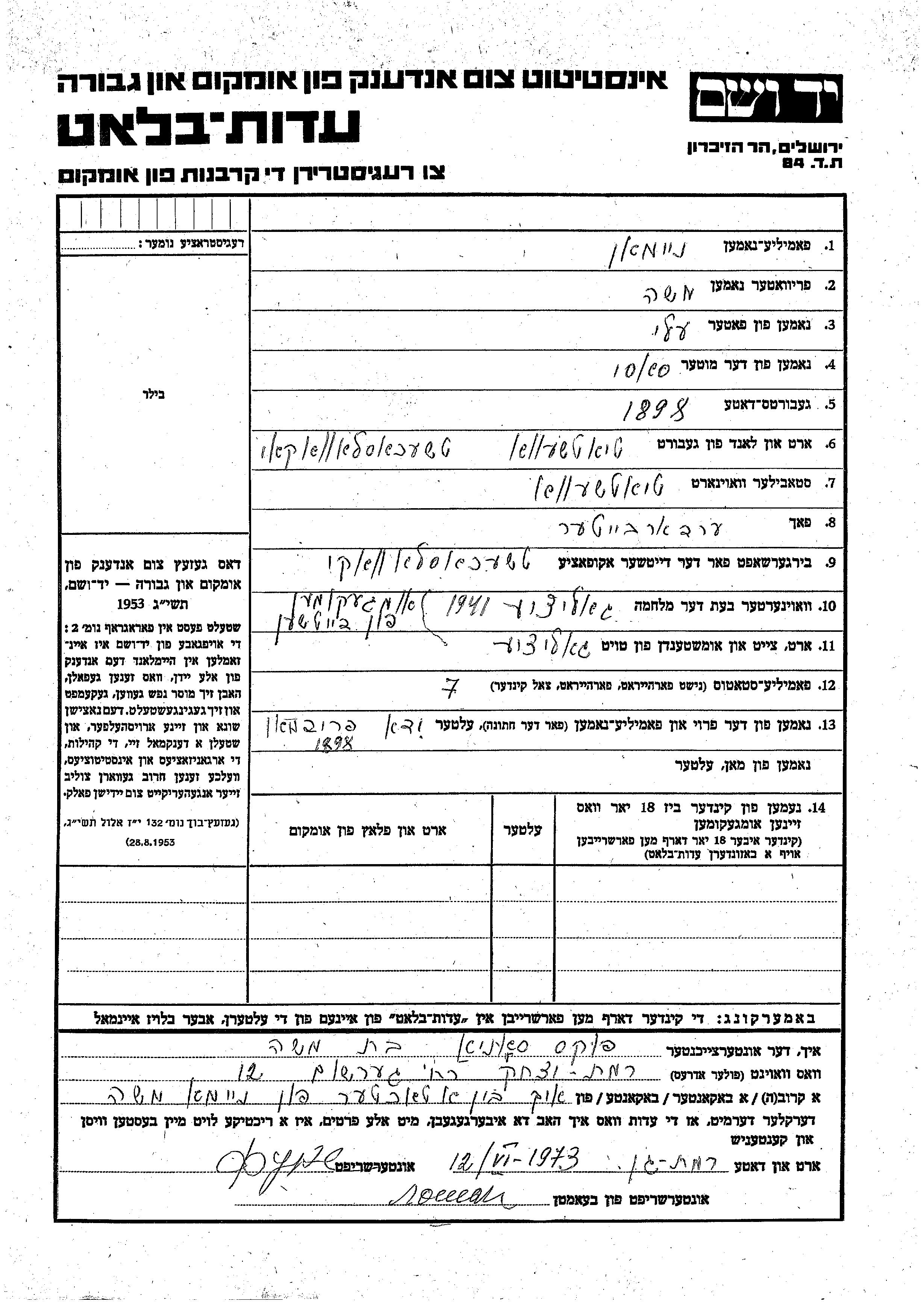 Яд Вашем - Листы свидетельских показаний Мемориального фонда