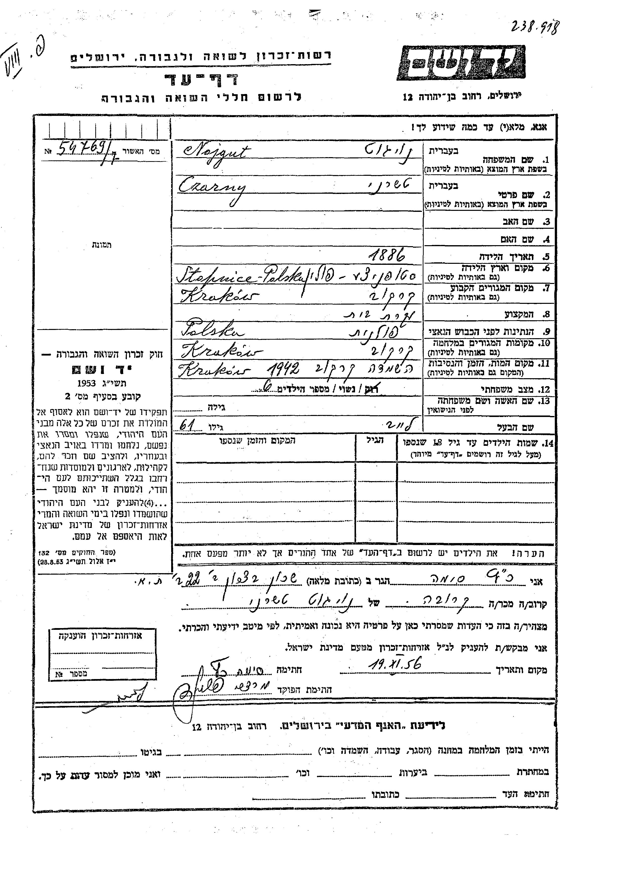 Яд Вашем - Листы свидетельских показаний Мемориального фонда