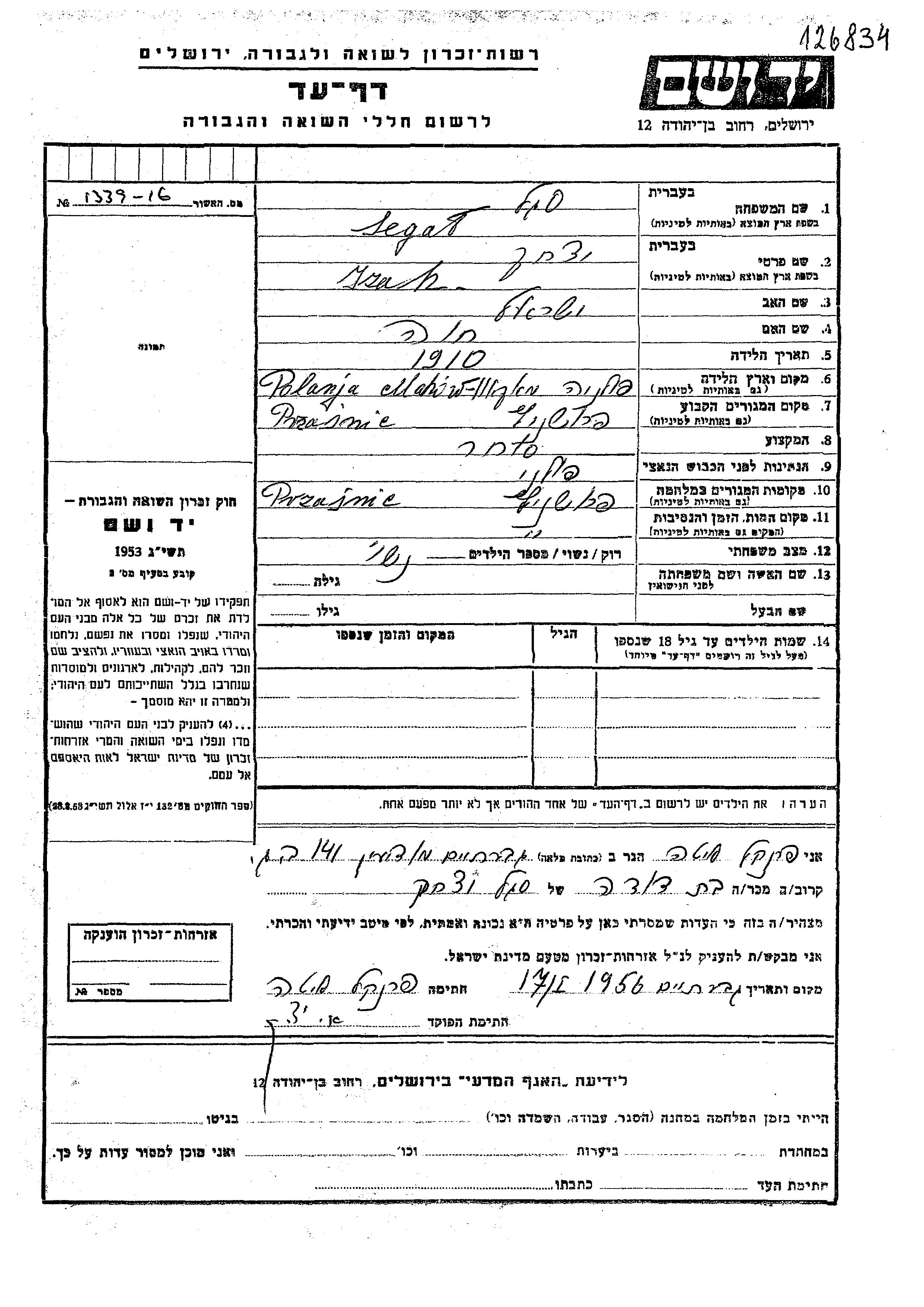 Яд Вашем - Листы свидетельских показаний Мемориального фонда