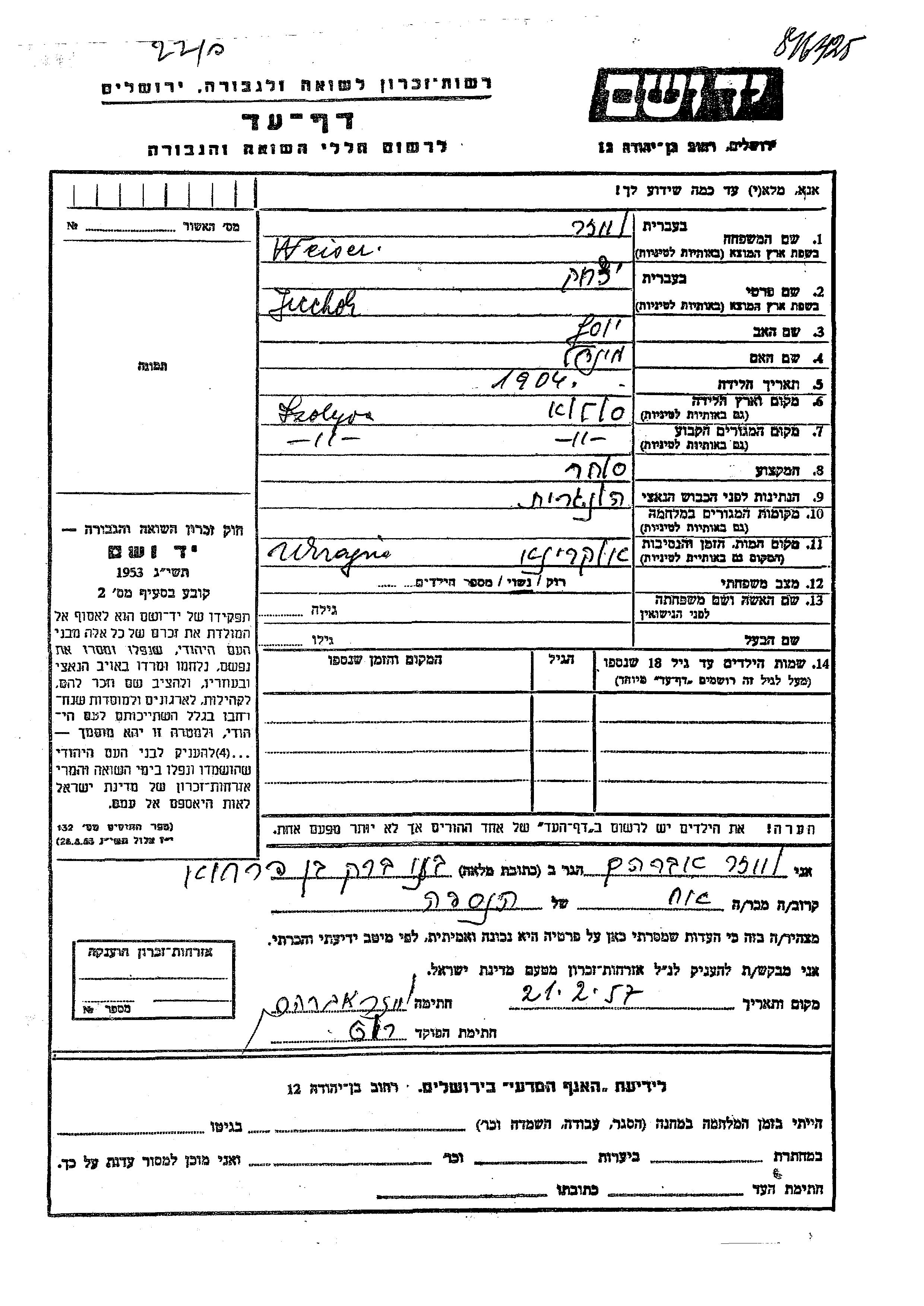 Поиск подателя Листа свидетельских показаний. Поиск по любому имени, включая уменьшительное или прозвище