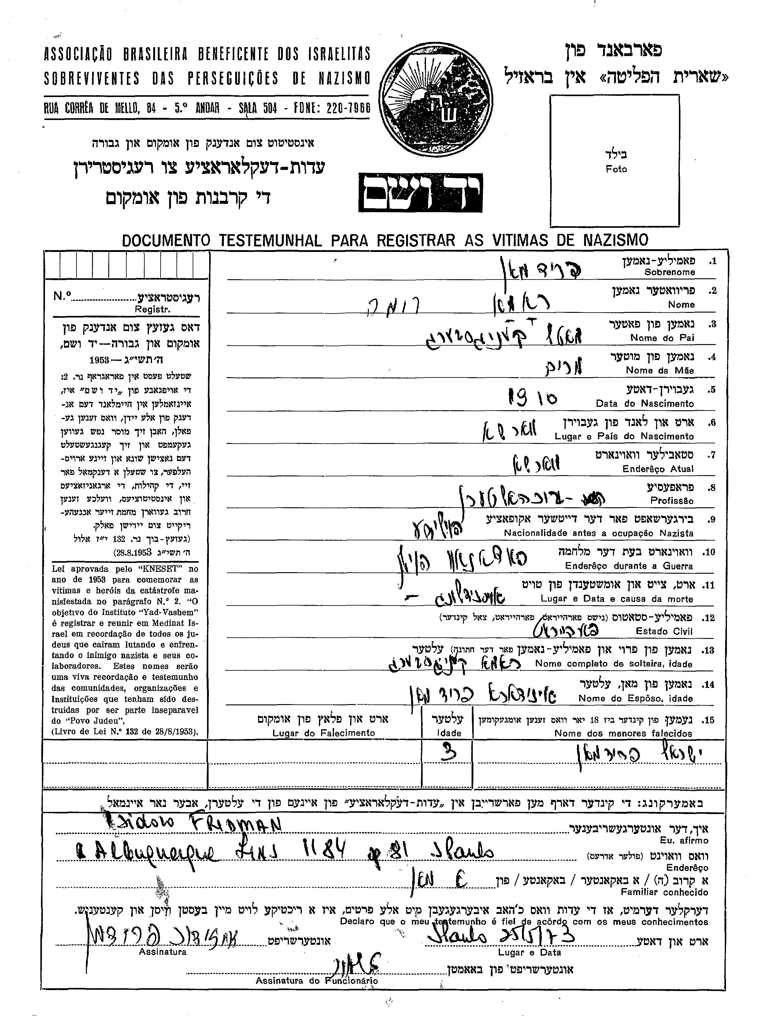 Фридман Рома 1910 Варшава, Польша Лист свидетельских показаний