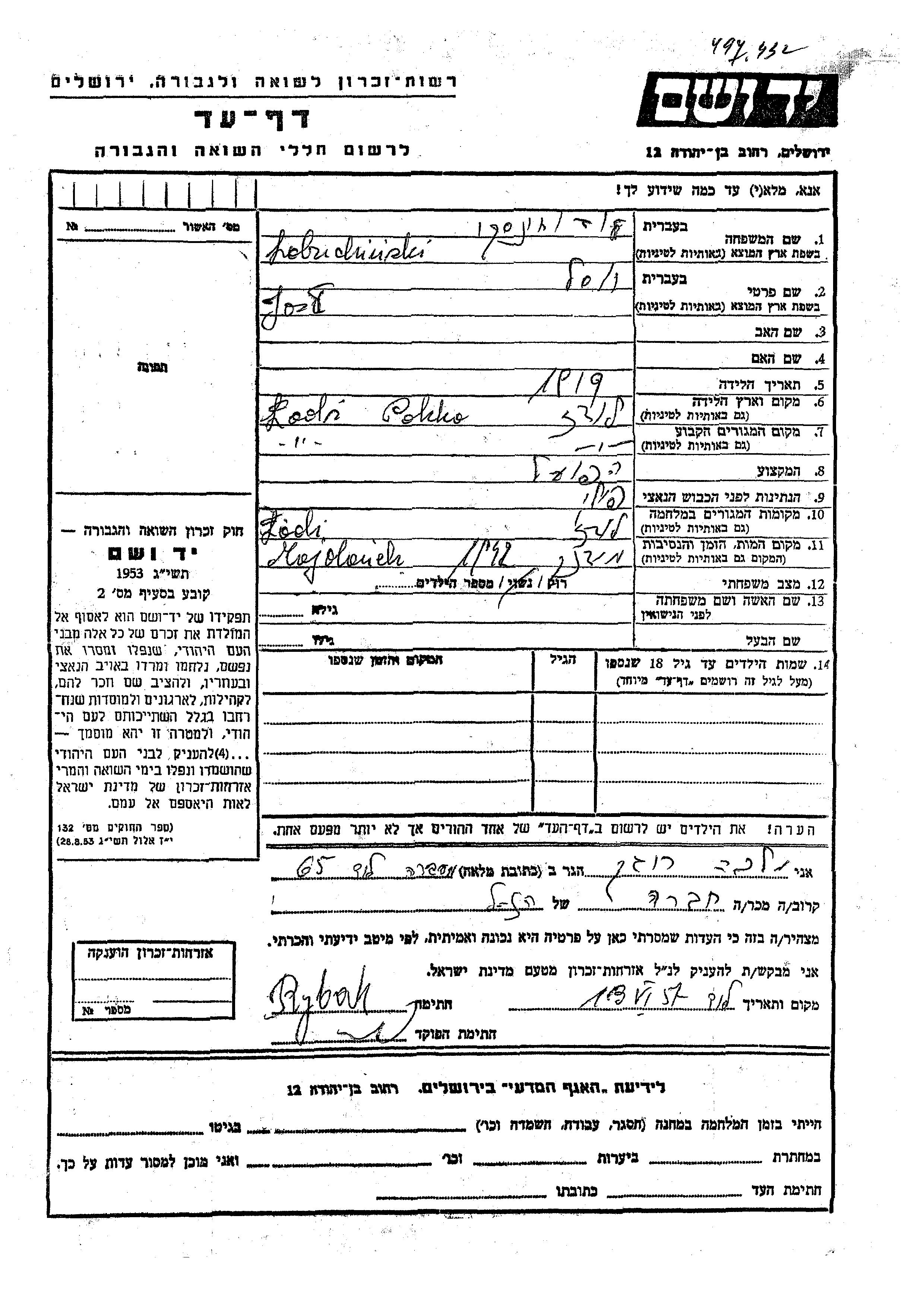 Яд Вашем - Листы свидетельских показаний Мемориального фонда