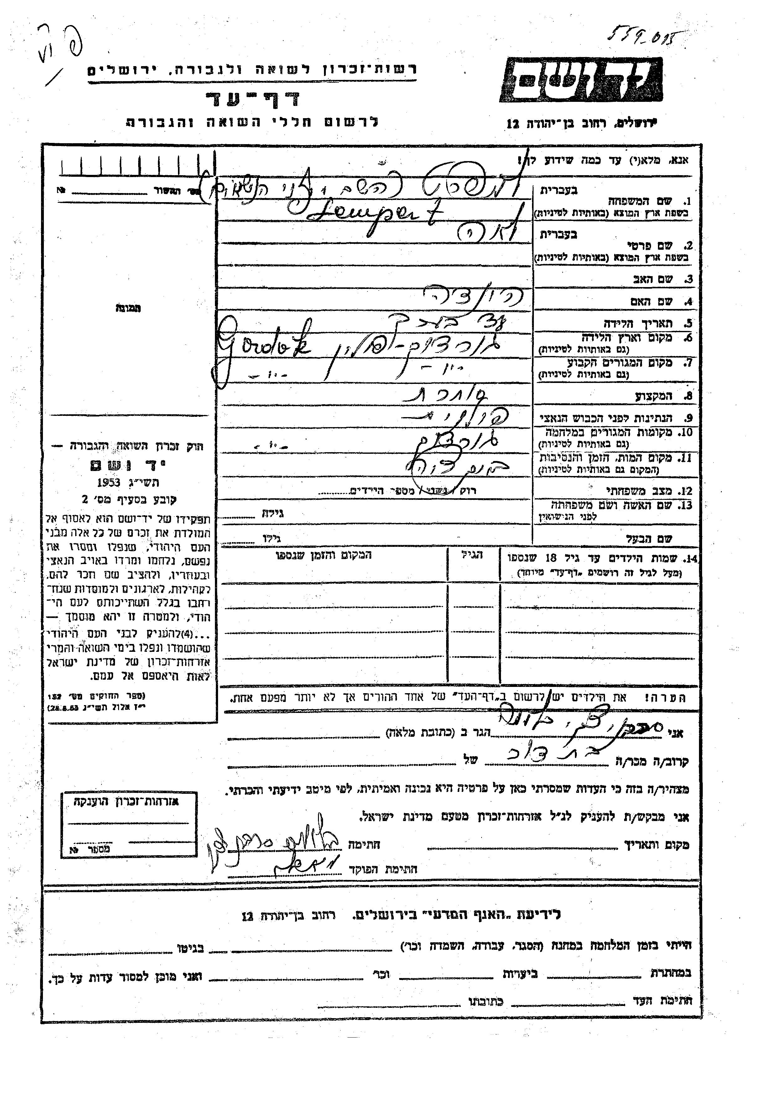 Яд Вашем - Листы свидетельских показаний Мемориального фонда