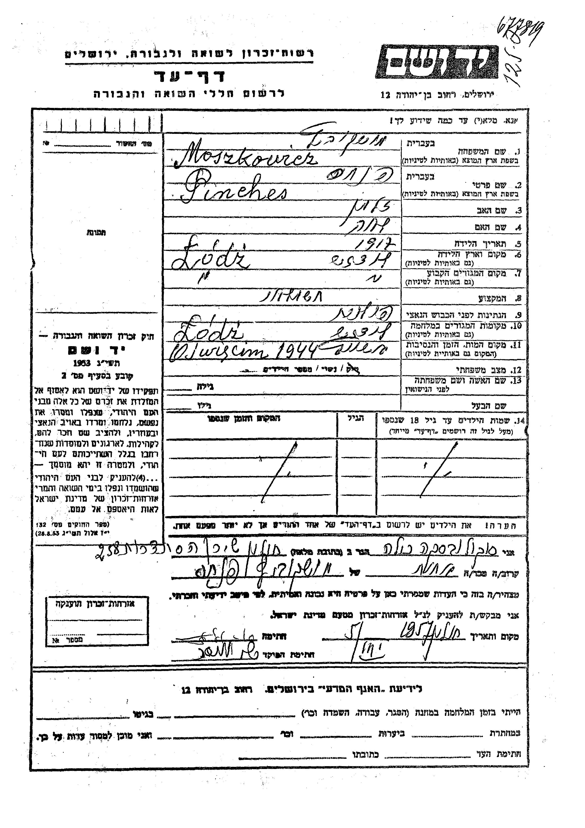 Мошкович Пинхес 1917 Лодзь, Польша Лист свидетельских показаний