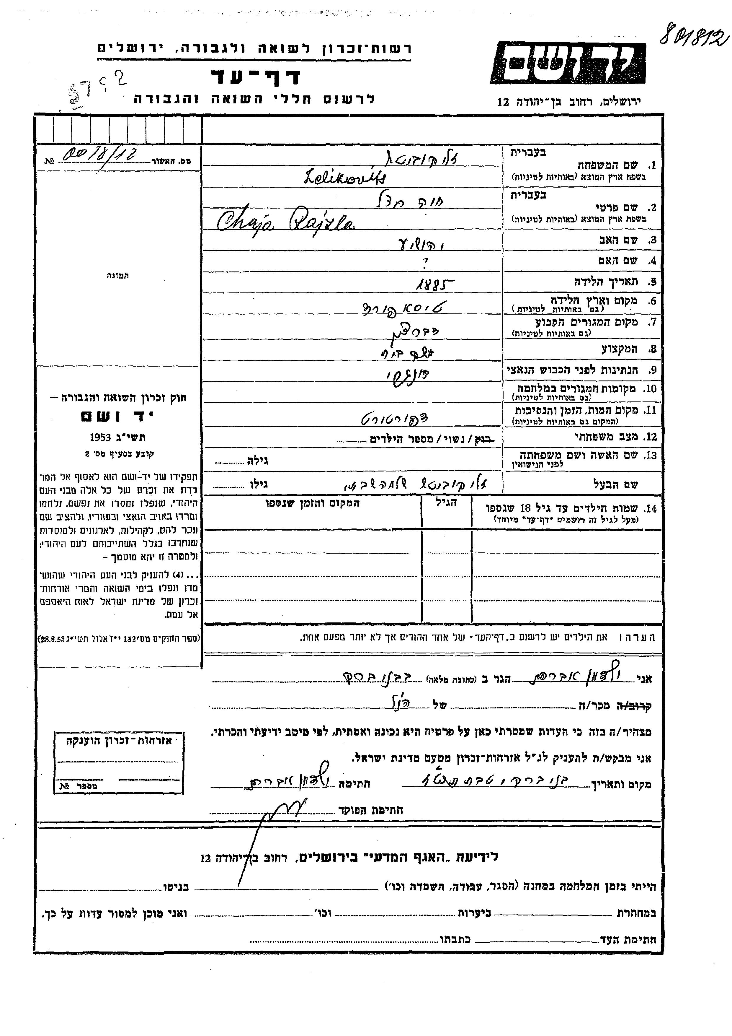 Яд Вашем - Листы свидетельских показаний Мемориального фонда