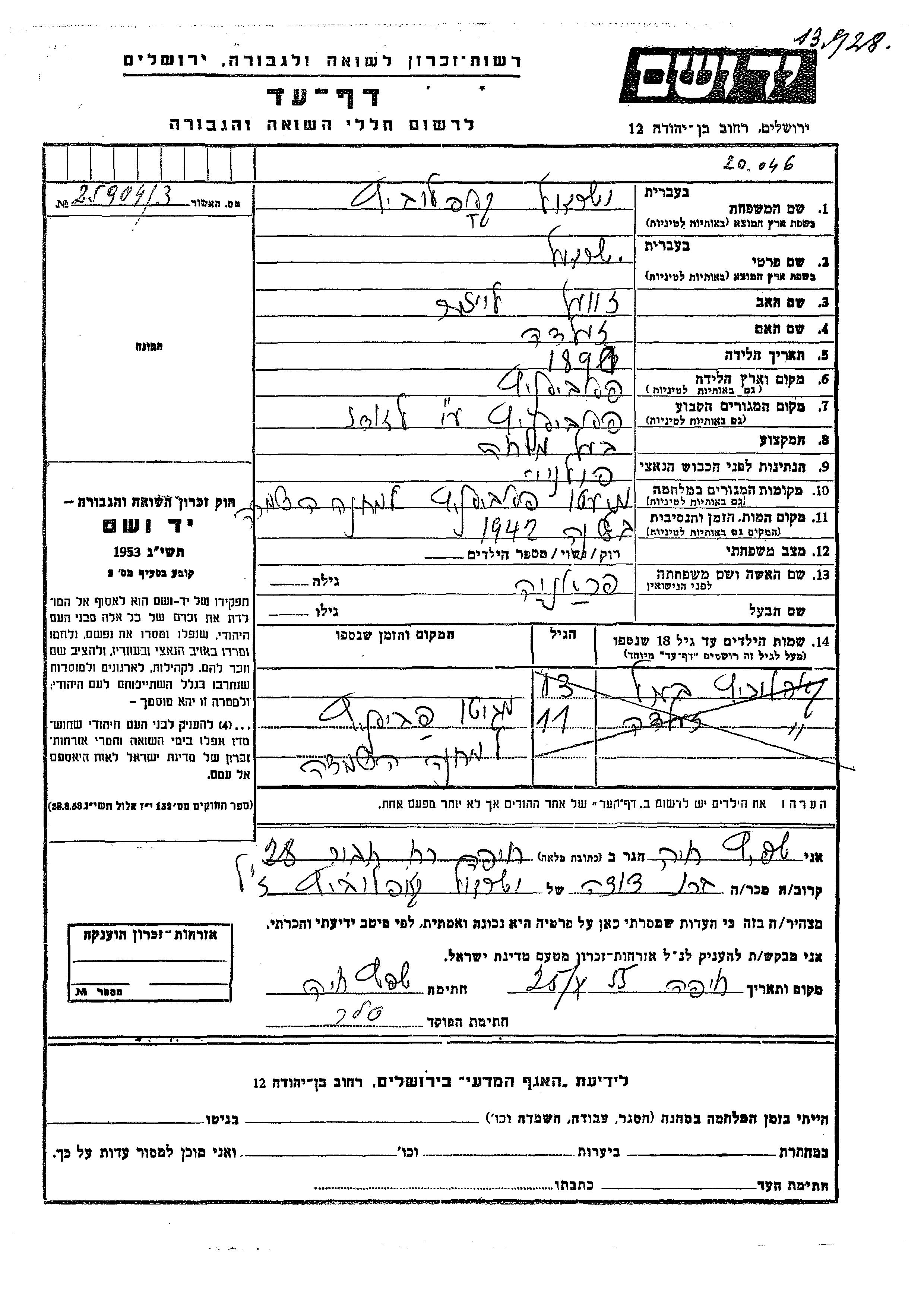 Яд Вашем - Листы свидетельских показаний Мемориального фонда