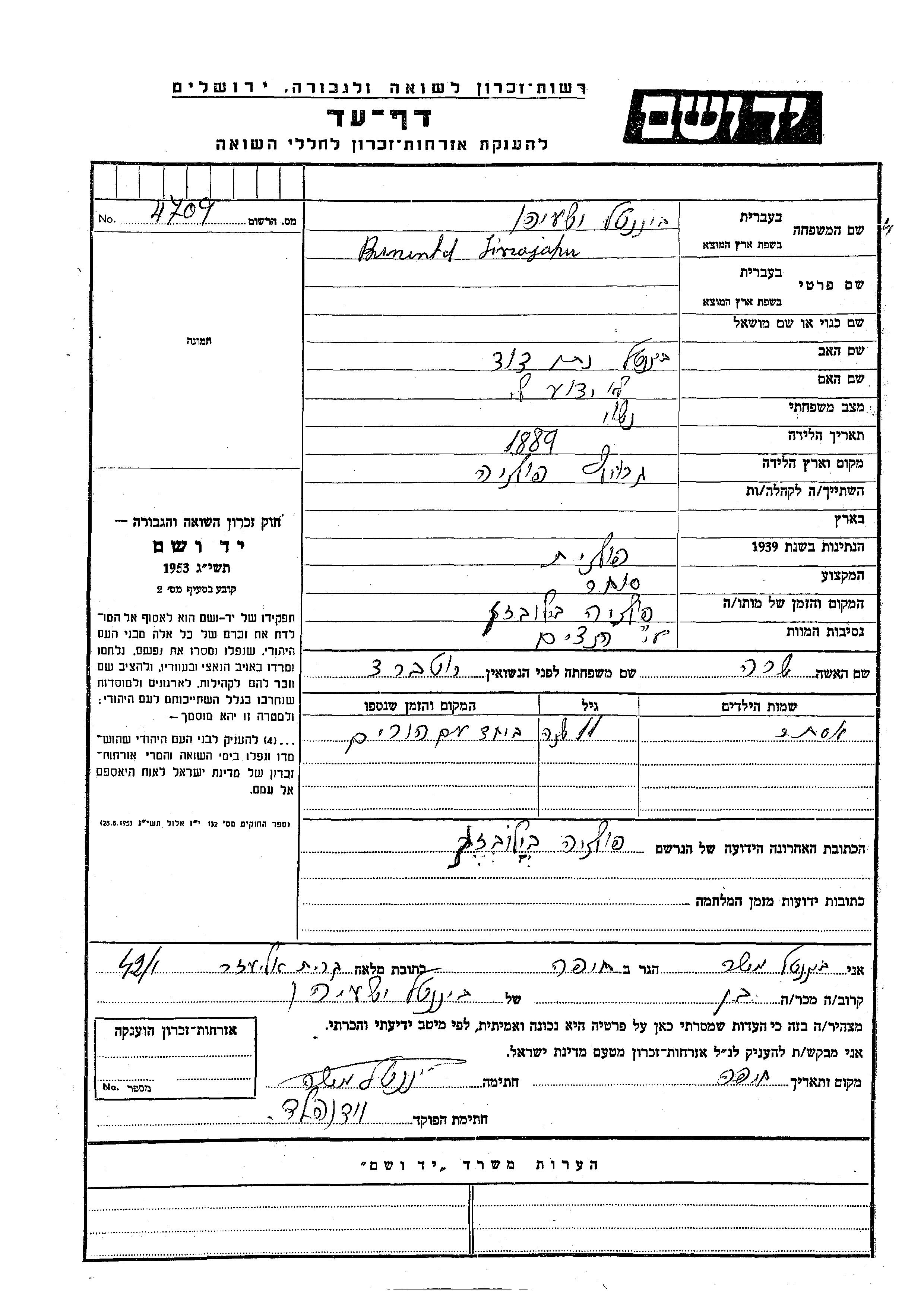 Яд Вашем - Листы свидетельских показаний Мемориального фонда