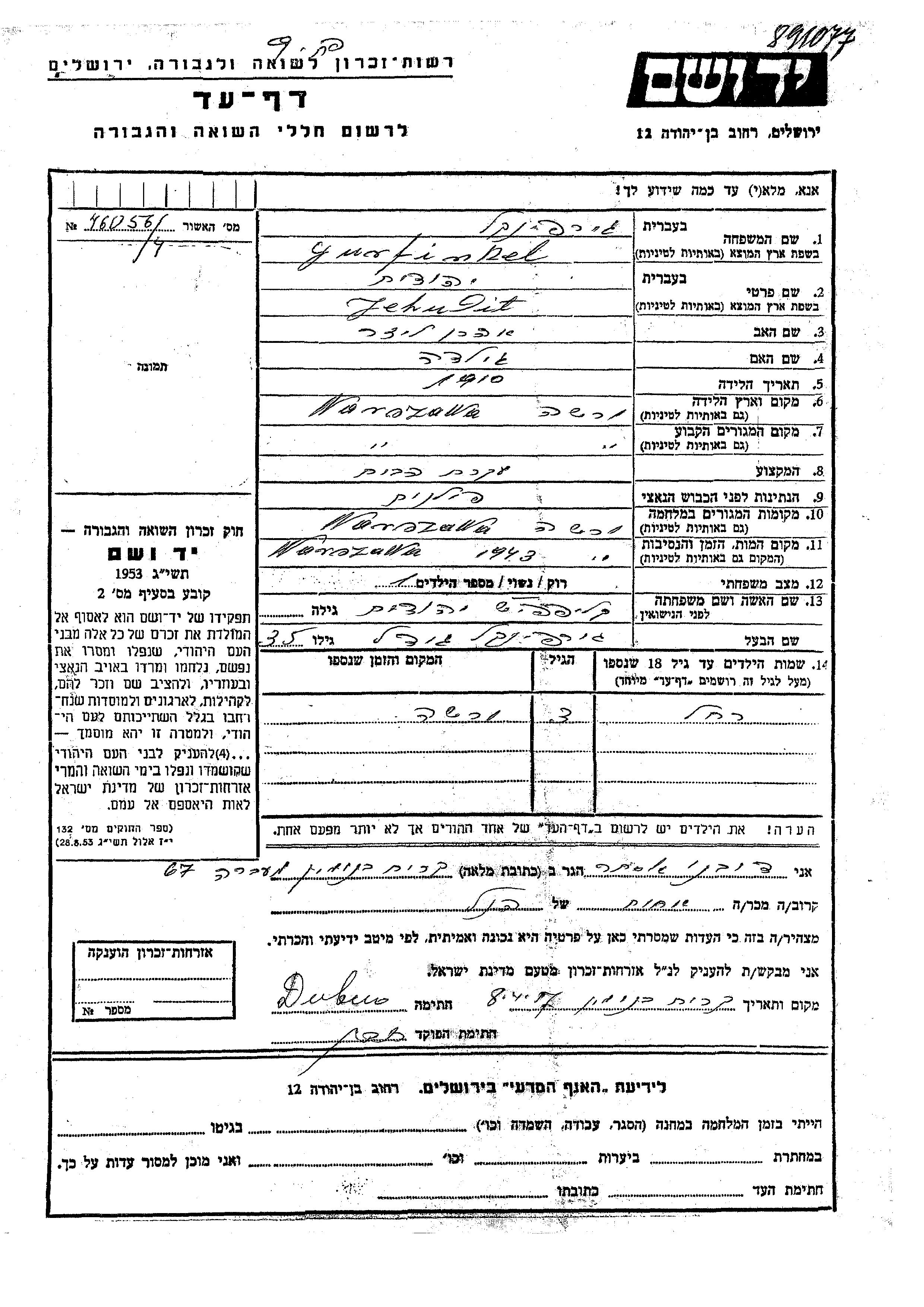 Яд Вашем - Листы свидетельских показаний Мемориального фонда
